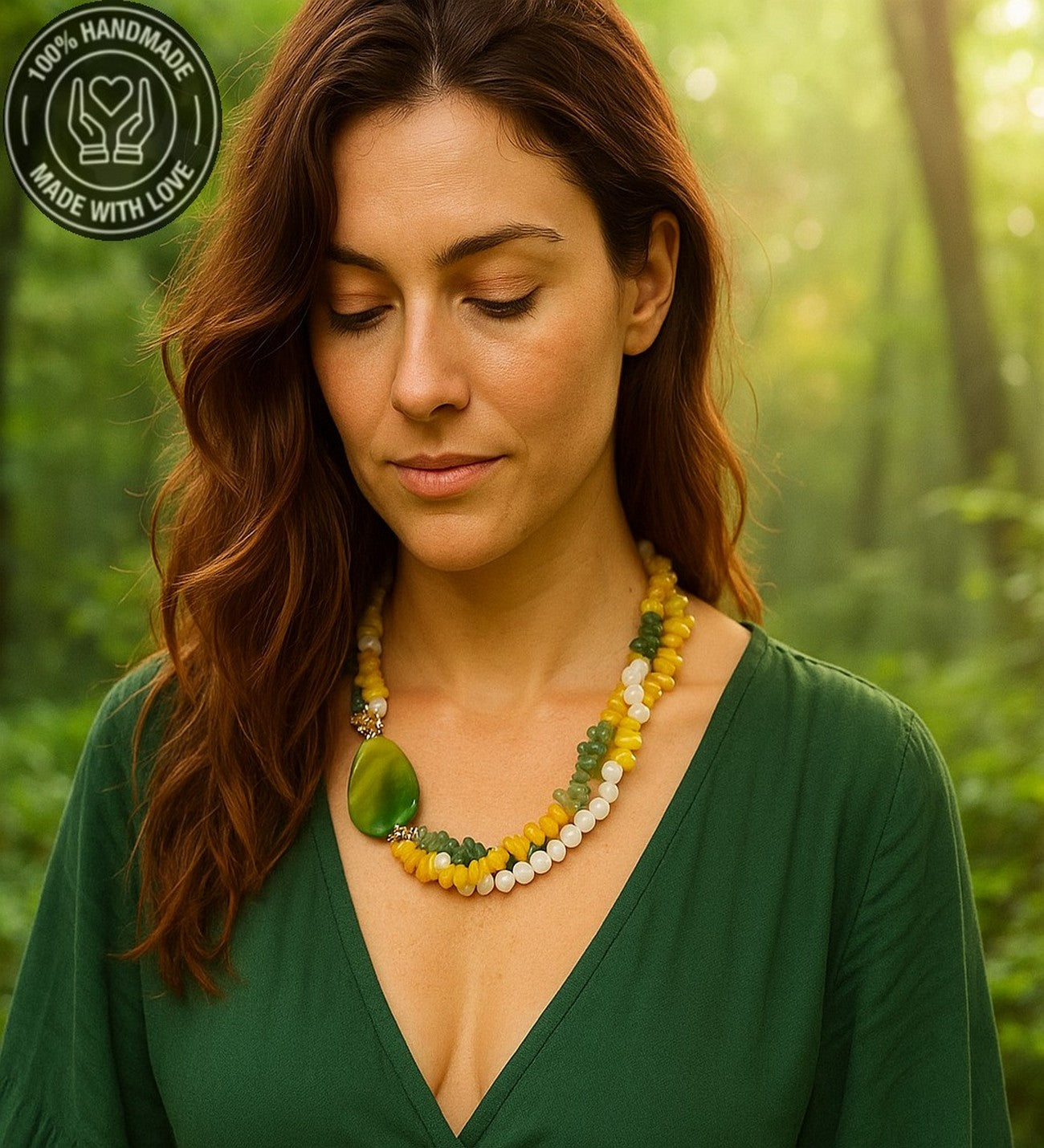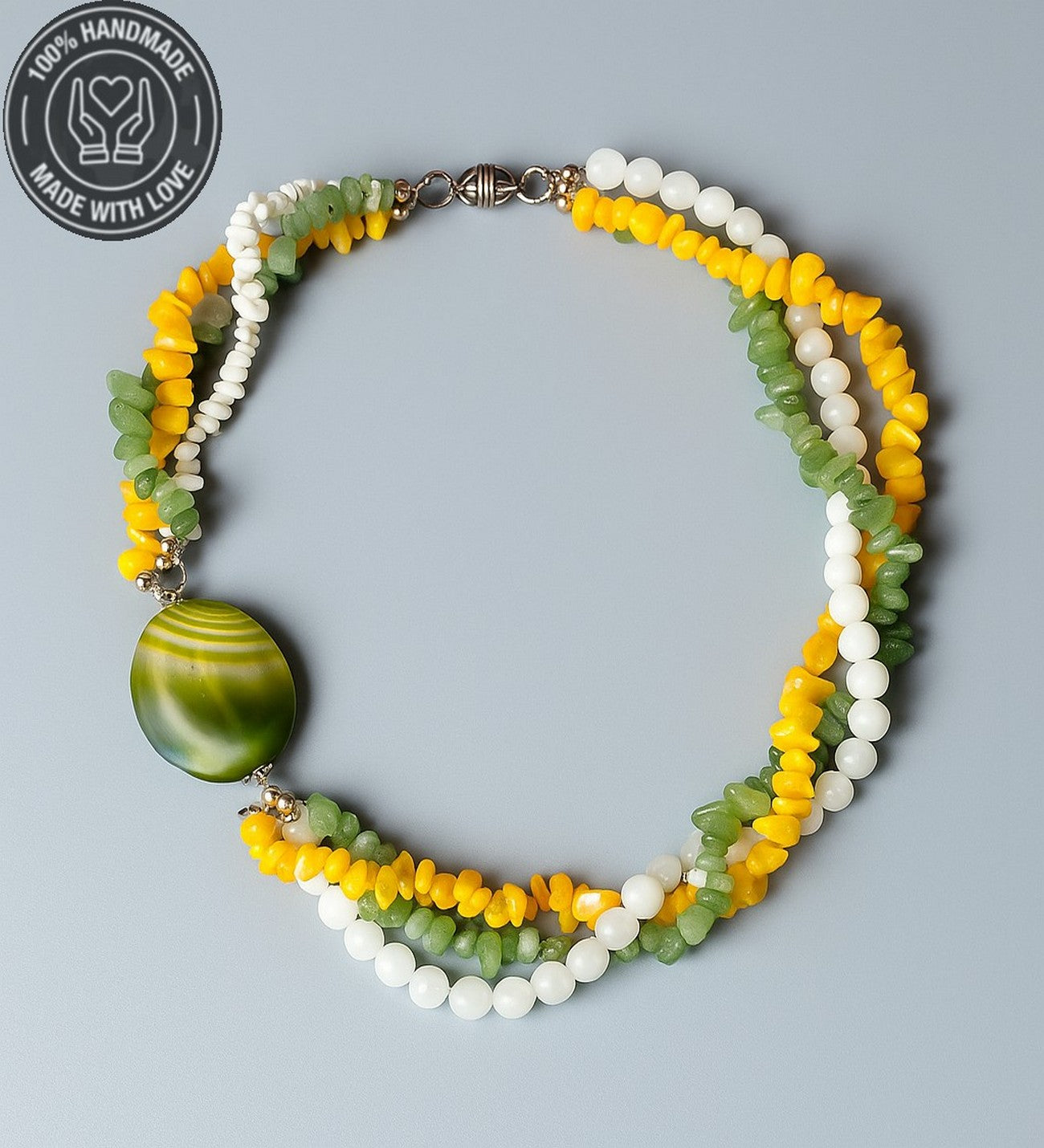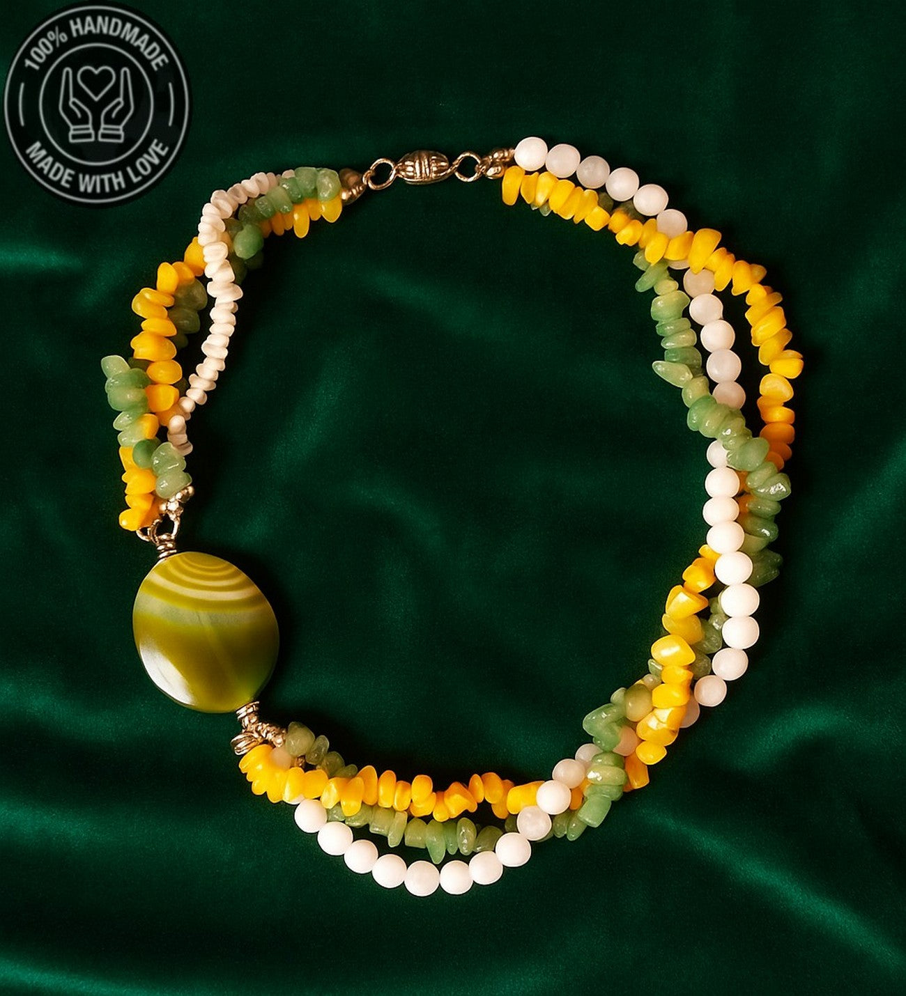 Özenle seçilmiş Akik ve Aventurin taşlarıyla hazırlanan bu özel kolye, el emeğiyle hayat buldu. Ruhunuza denge katacak bu zarif tasarım, size özel bir enerji sunuyor.