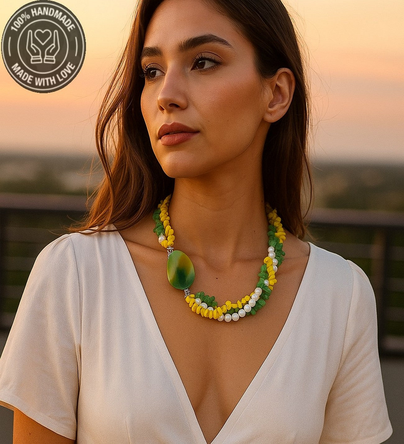 Akik ve Aventurin'in mucizevi enerjisiyle hayatınıza şans, huzur ve canlılık katmak için bu özel kolyeyi hemen edinin! İçsel dengeyi bulmak ve hedeflerinize ulaşmak için bu eşsiz parçayı sepetinize ekleyin!