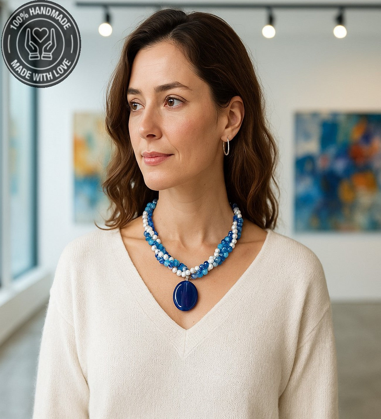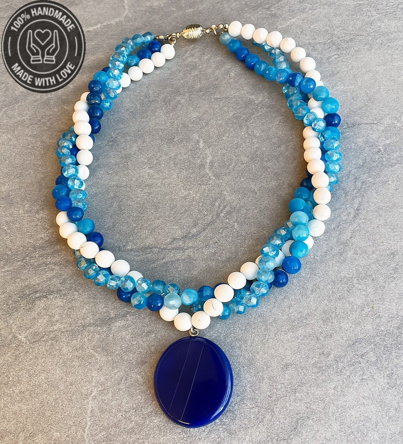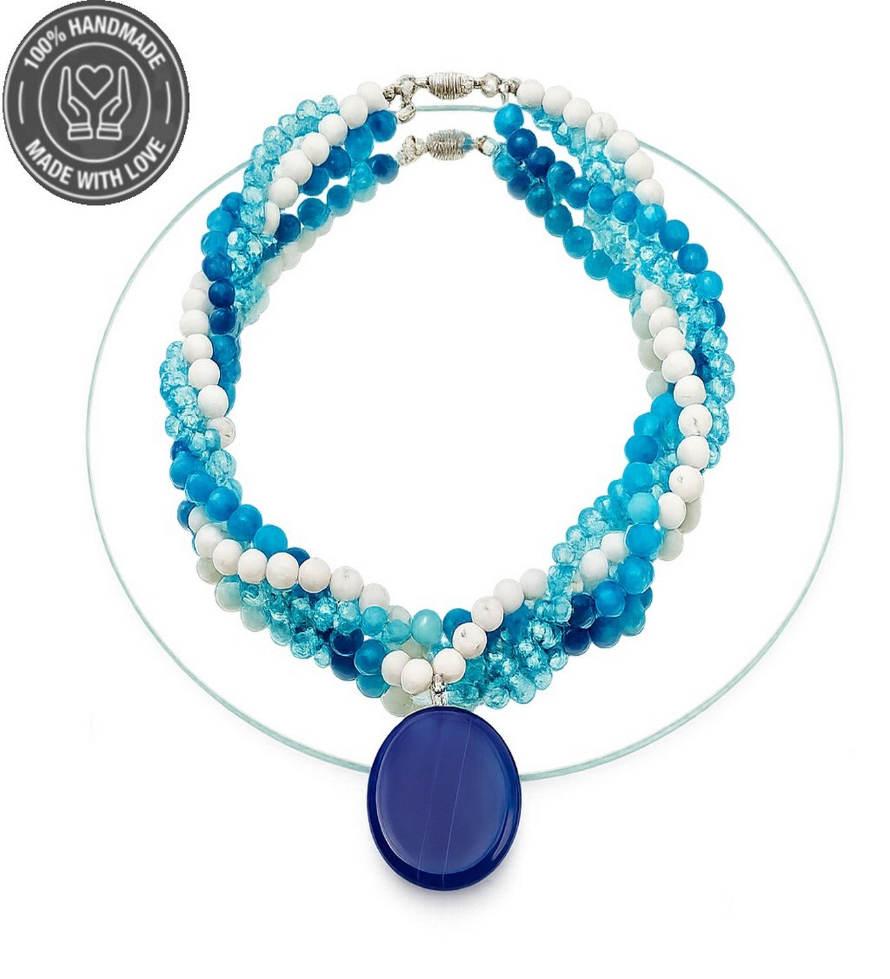 Akik, Havlit ve Kristal'in doğal enerjisiyle hayatınıza koruma, huzur ve ifade gücü katmak için bu özel kolyeyi hemen edinin! İçsel dengeyi bulmak ve hedeflerinize ulaşmak için bu eşsiz parçayı sepetinize ekleyin!
