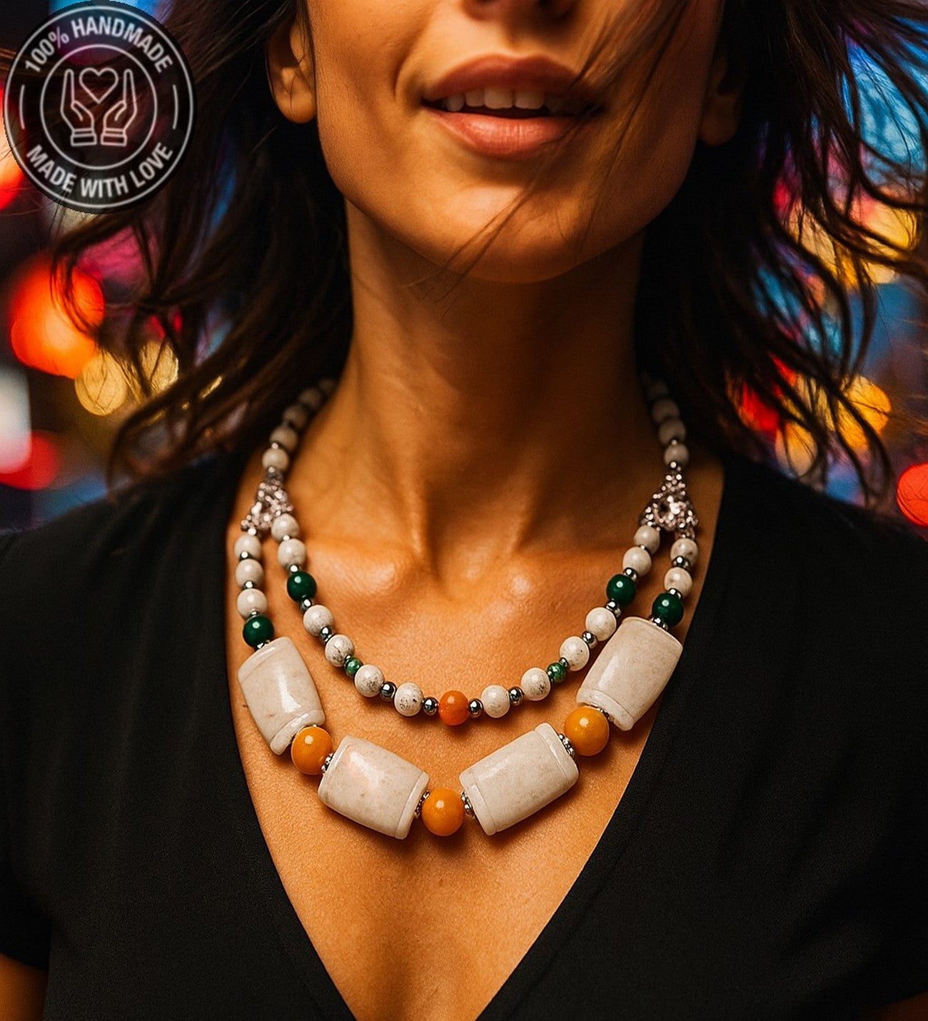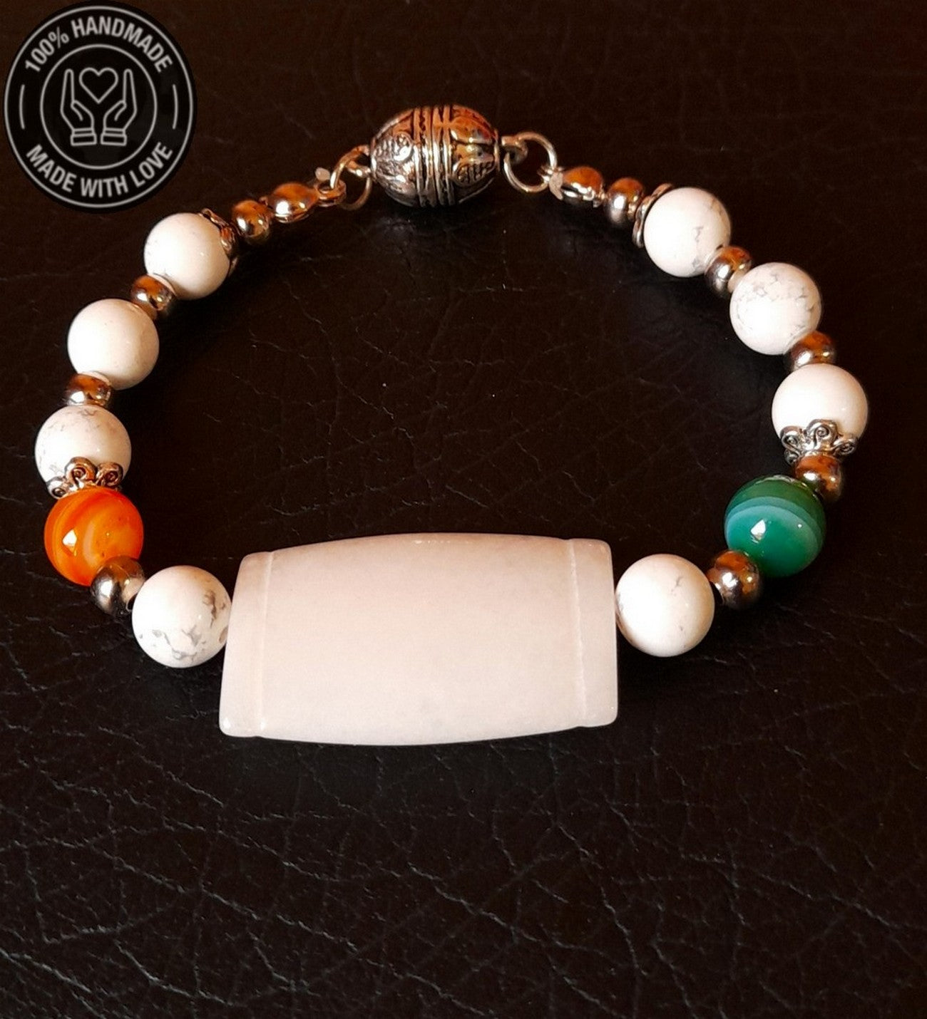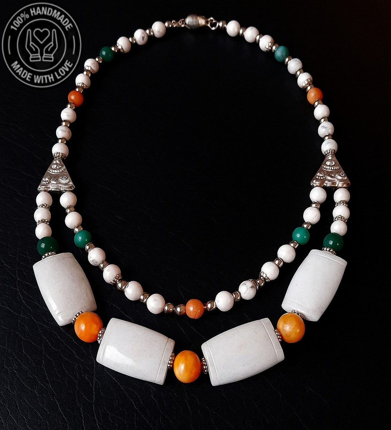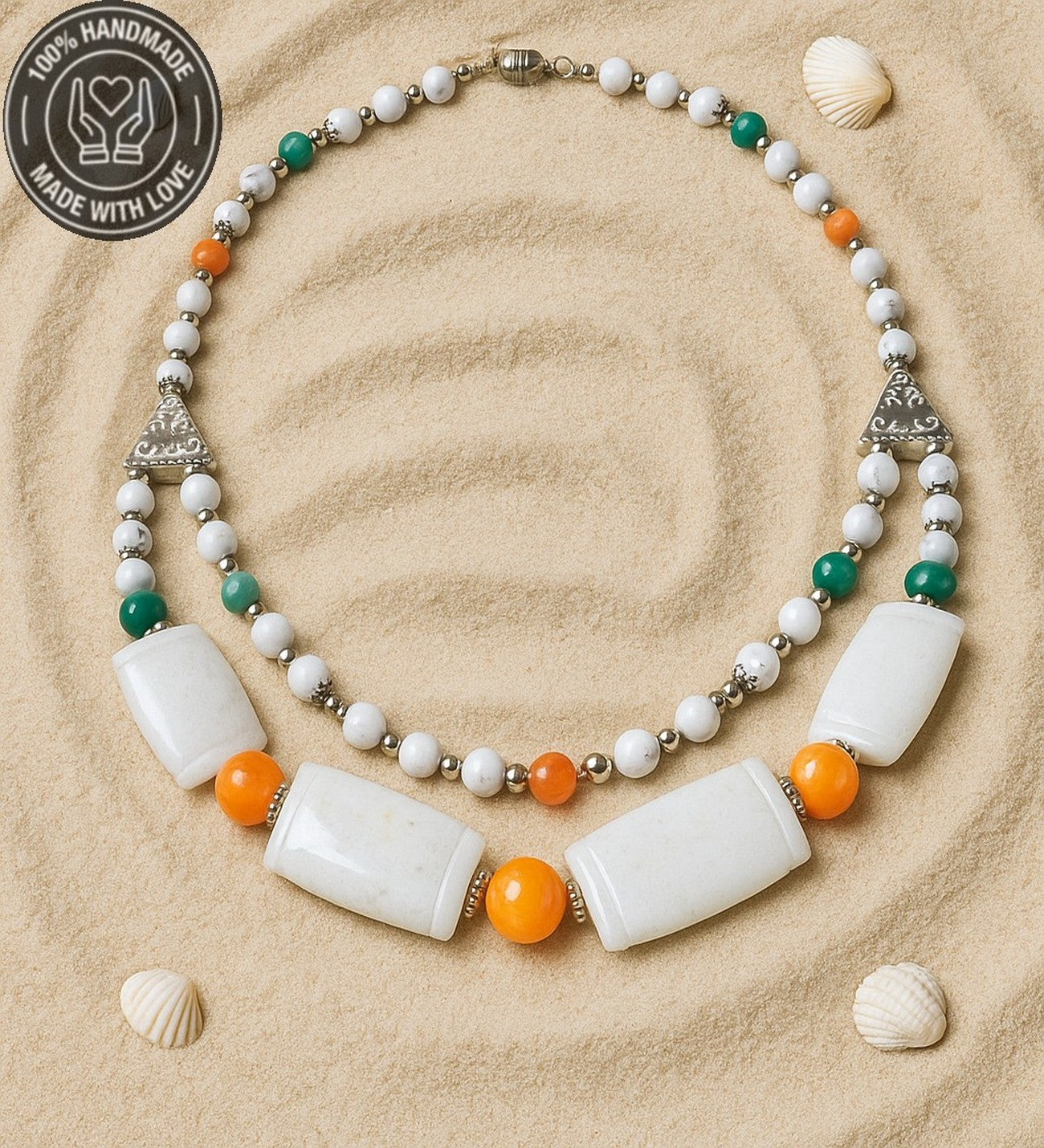 Doğal taşların ahenkli birleşimiyle hazırlanan bu iki sıralı kolye ve bileklik seti, hem şıklığınızı tamamlayacak hem de size içsel huzur, zihinsel berraklık, duygusal denge, sakinlik, konsantrasyon ve pozitif titreşimler katacak. Havlit ve Kuvars taşlarının özelliklerini detaylı olarak ürün resimlerinde inceleyebilirsiniz.