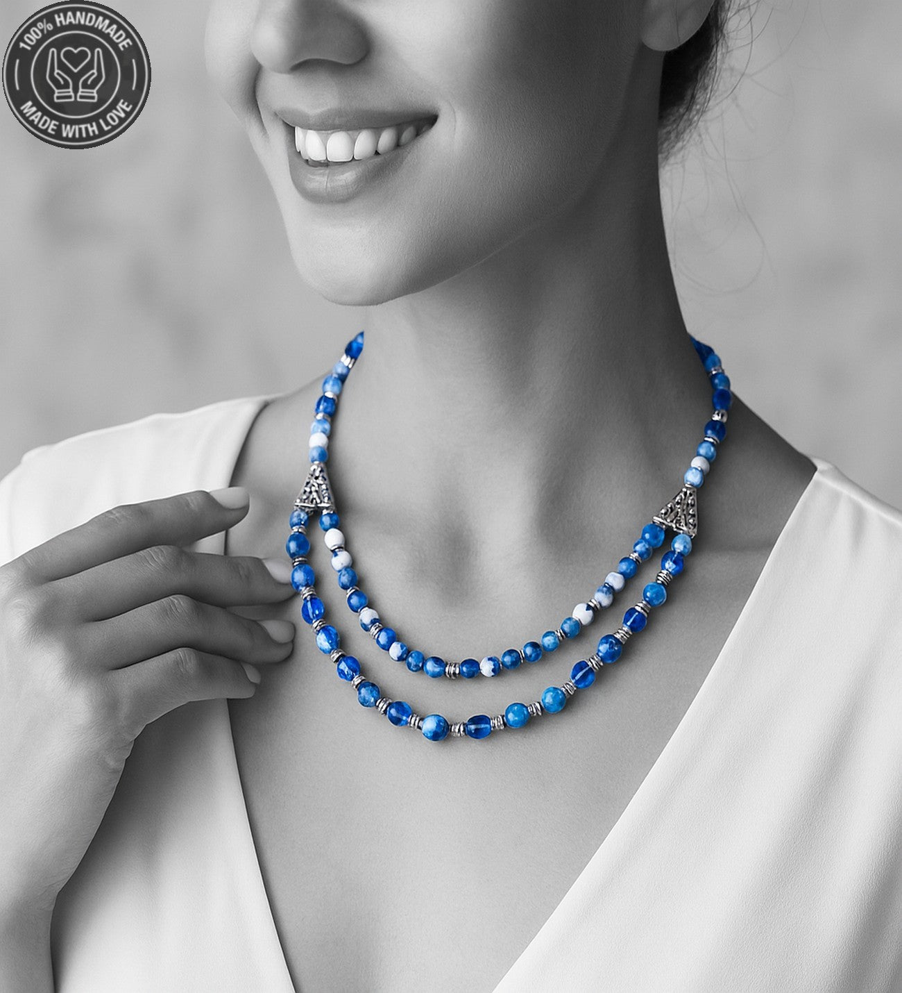 48-50 cm uzunluğundaki bu özel kolye, akik ve kuvars taşlarının eşsiz uyumuyla tasarlandı. Eğer farklı bir ölçüde sipariş vermek istiyorsanız lütfen bunu not kısmında belirterek bize bildiriniz.