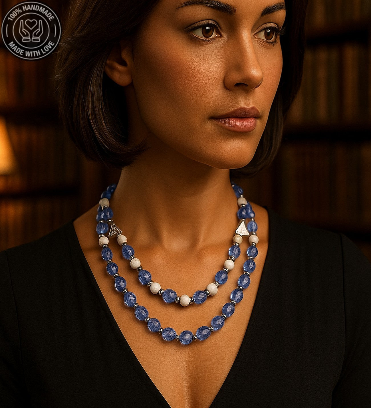 48-50 cm uzunluğundaki bu özel iki sıralı kolye, kuvars ve havlit taşlarının eşsiz uyumuyla tasarlandı. Huzur ve dengeyi bir araya getiren bu kolye, hem günlük yaşamınızda hem de özel anlarınızda size eşlik edecek. Eğer farklı bir ölçüde sipariş vermek istiyorsanız lütfen bunu not kısmında belirterek bize bildiriniz.