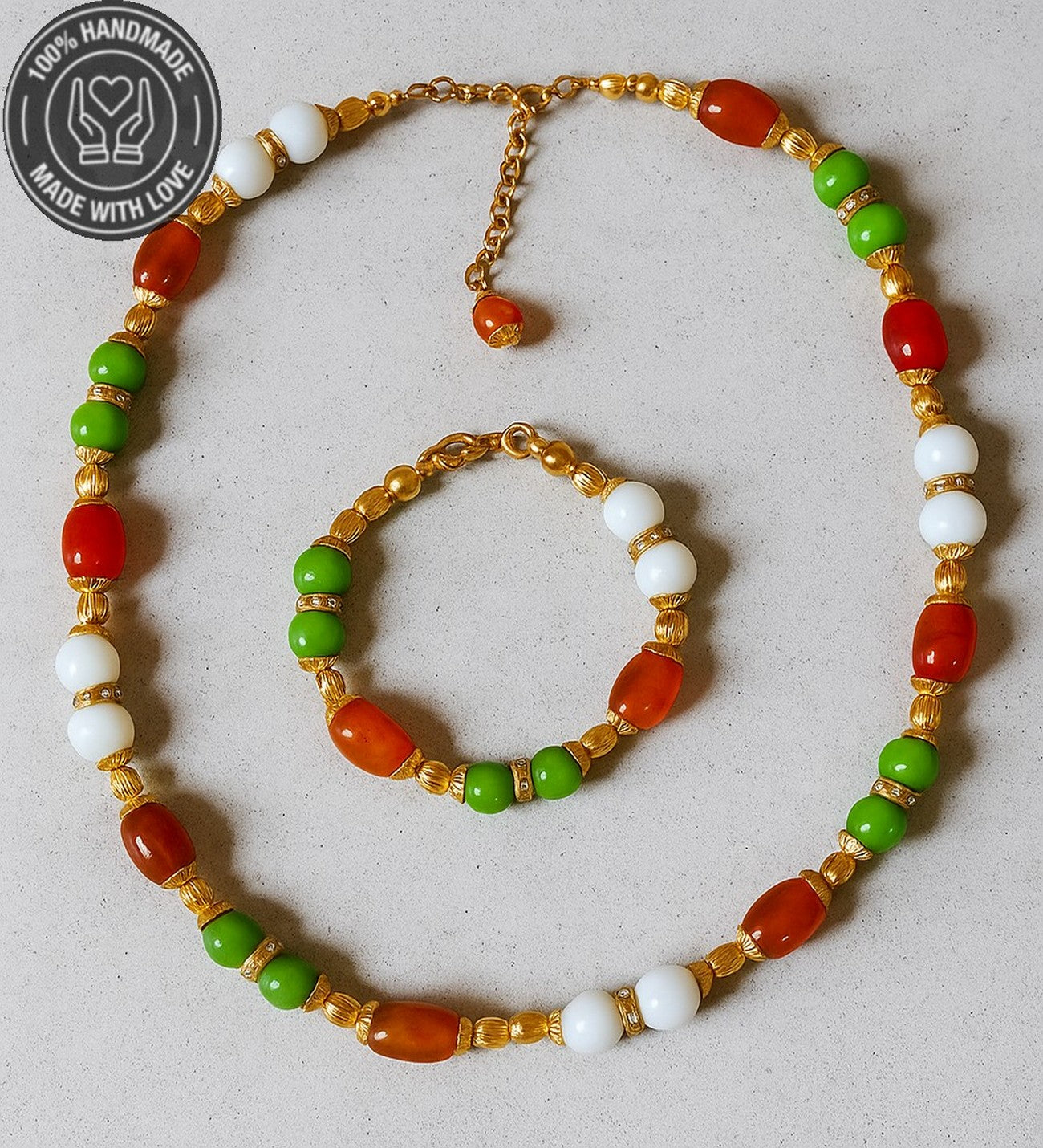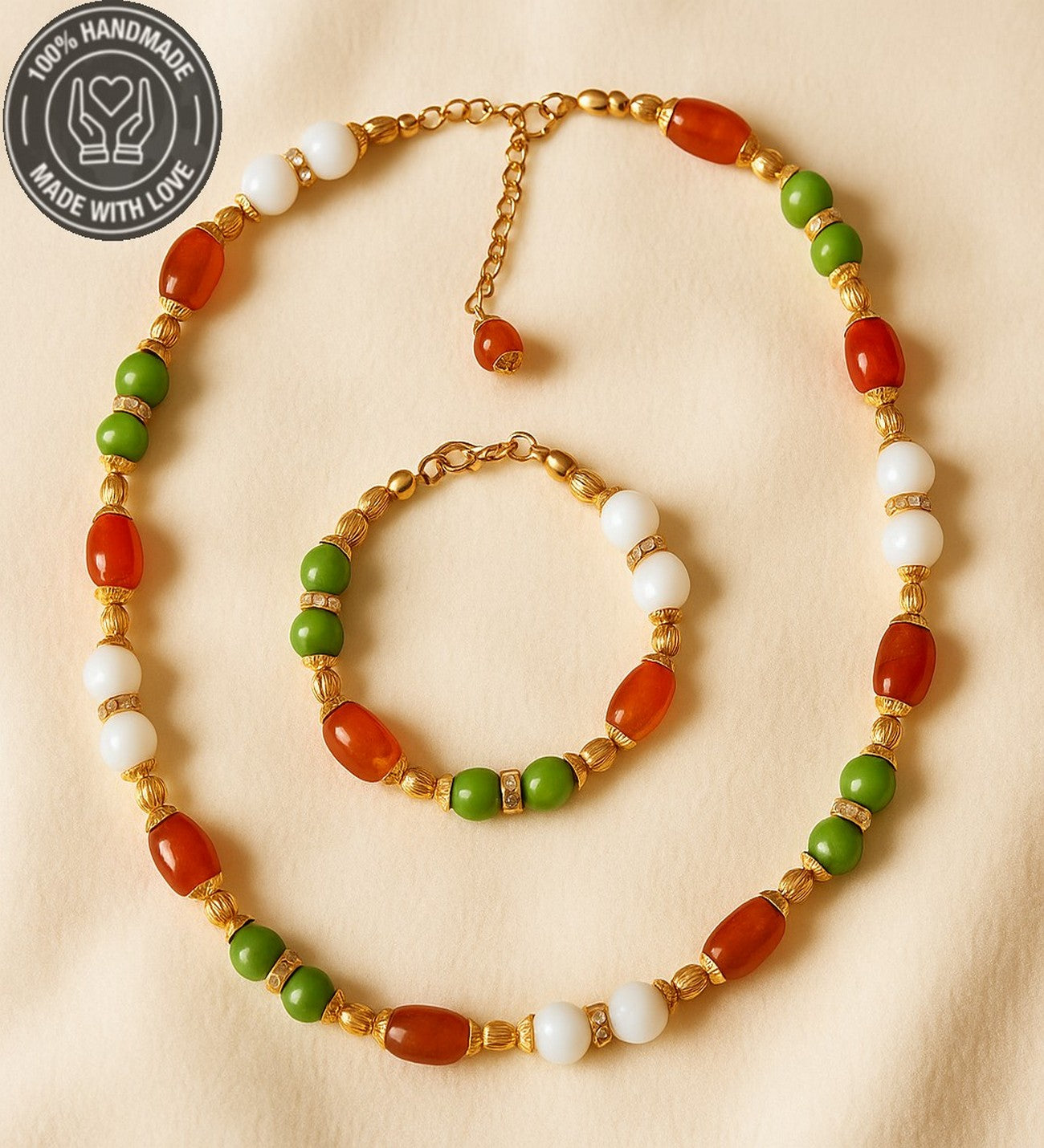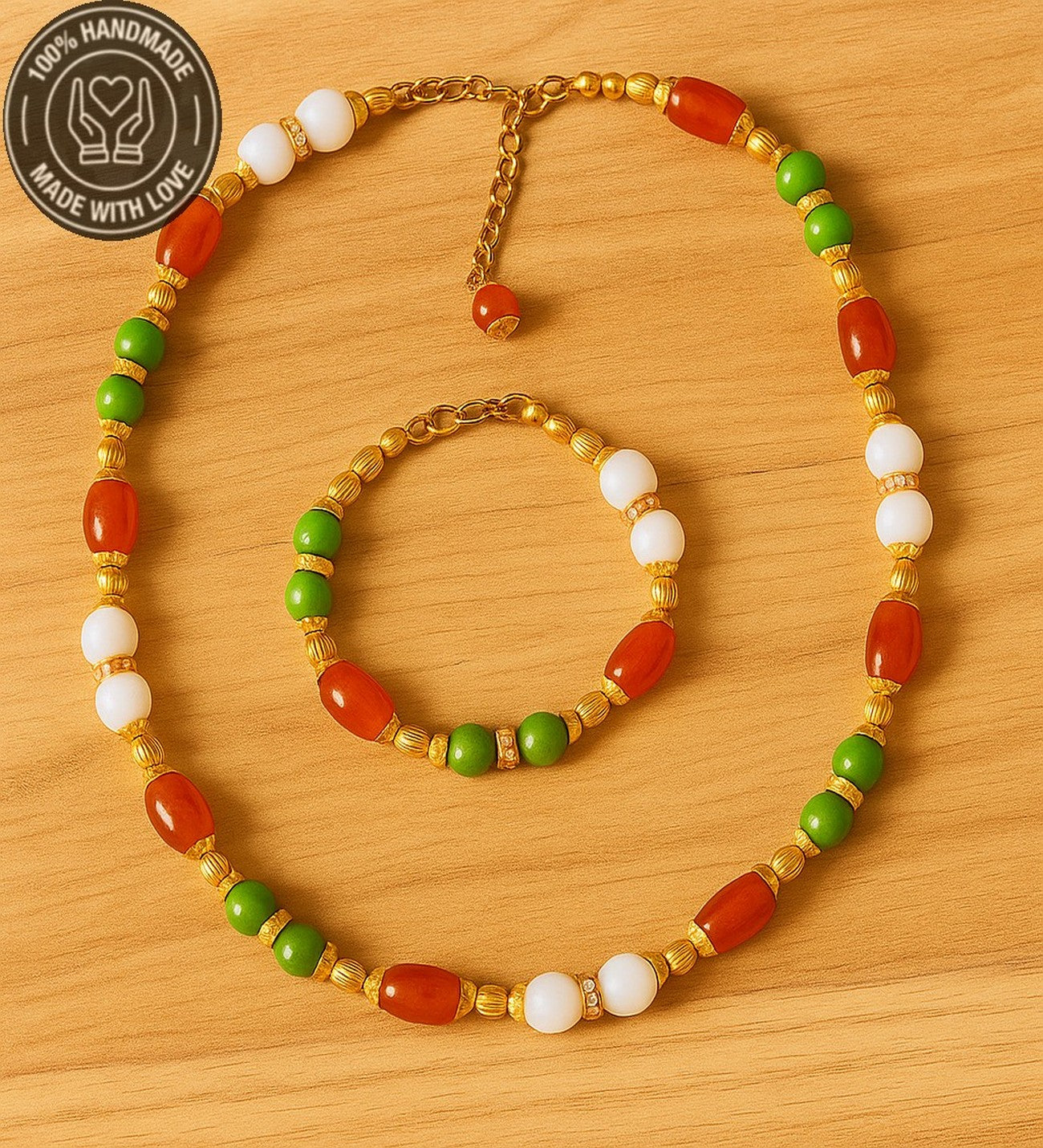Uyumlu kolye ve bileklik tasarımı ile doğal ve anlamlı bir bütünlük sağlar.