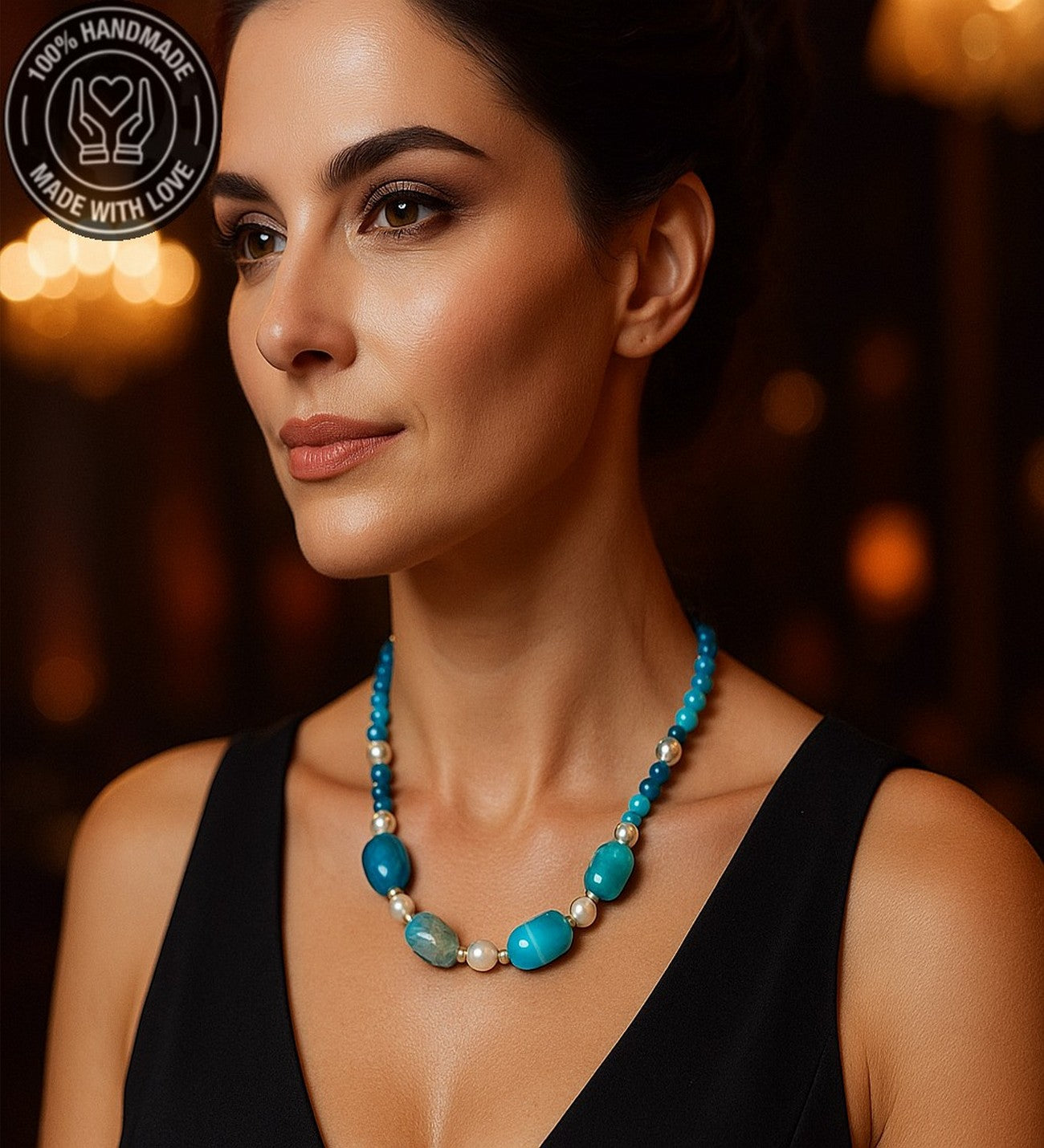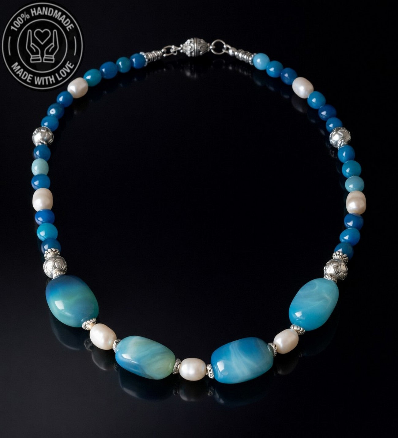 Özenle seçilmiş Akik ve İnci taşlarıyla hazırlanan bu özel Elit seri kolye, el emeğiyle hayat buldu. Ruhunuza denge katacak bu zarif tasarım, size özel bir enerji sunuyor.