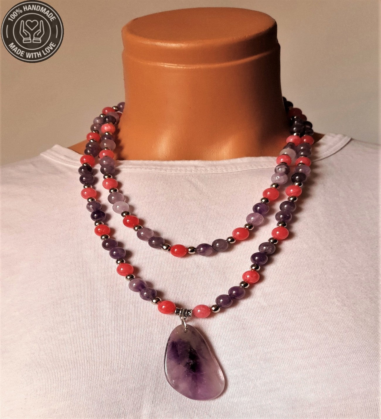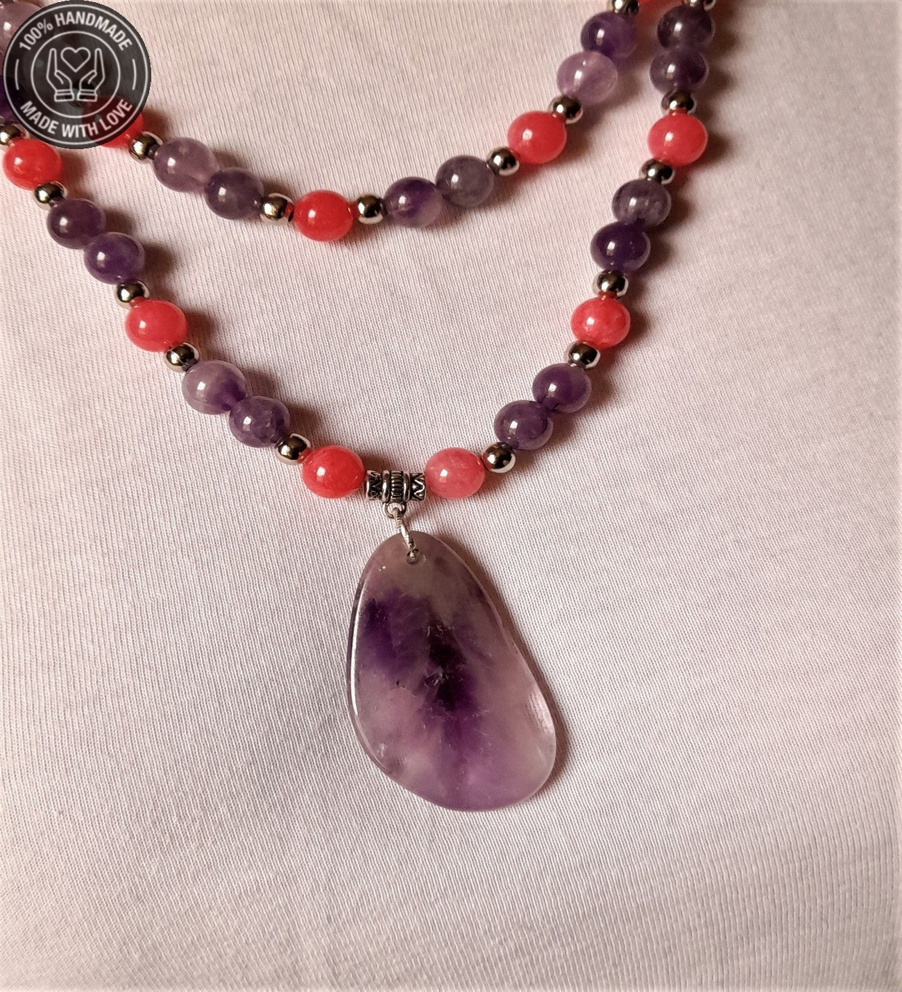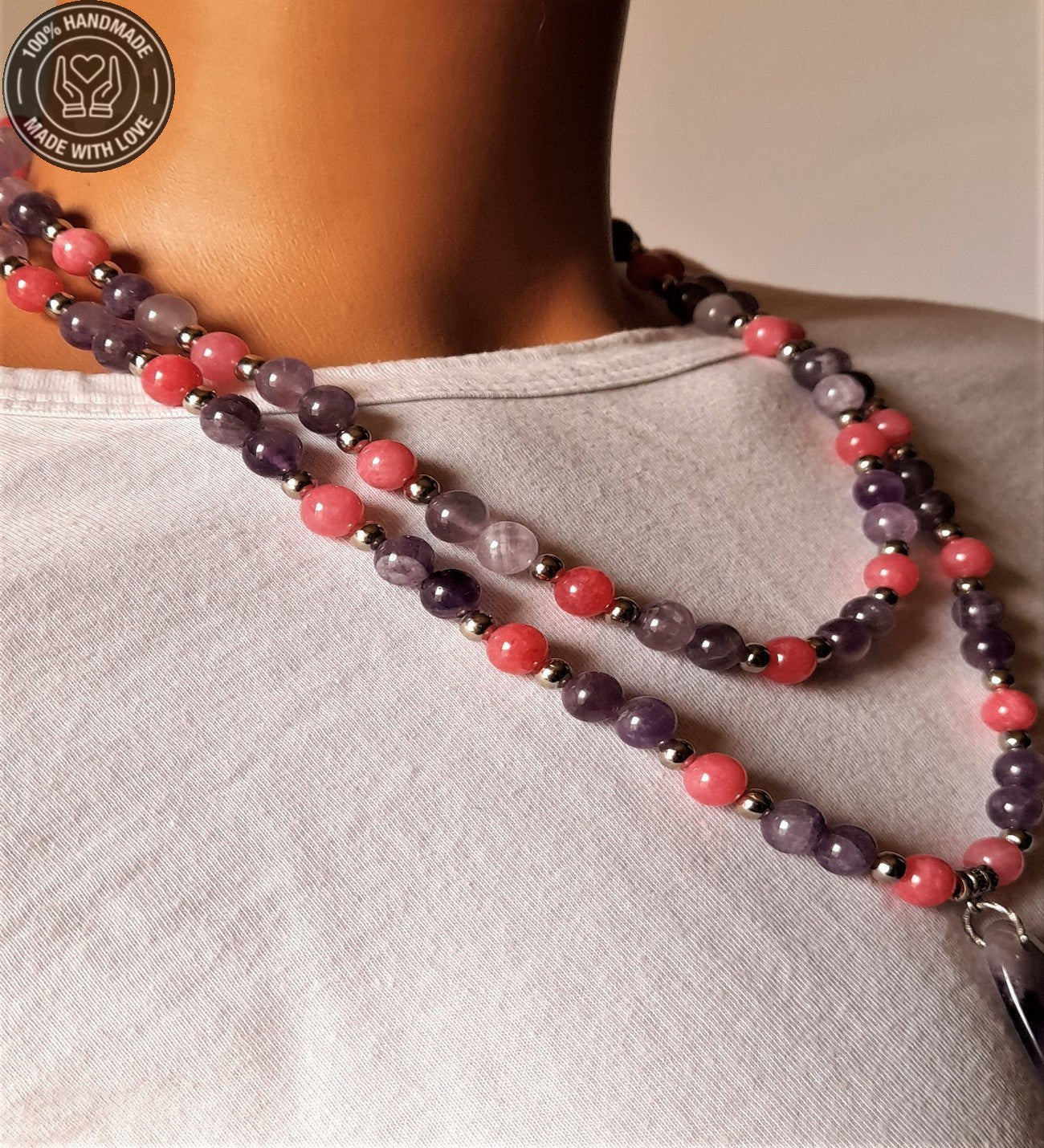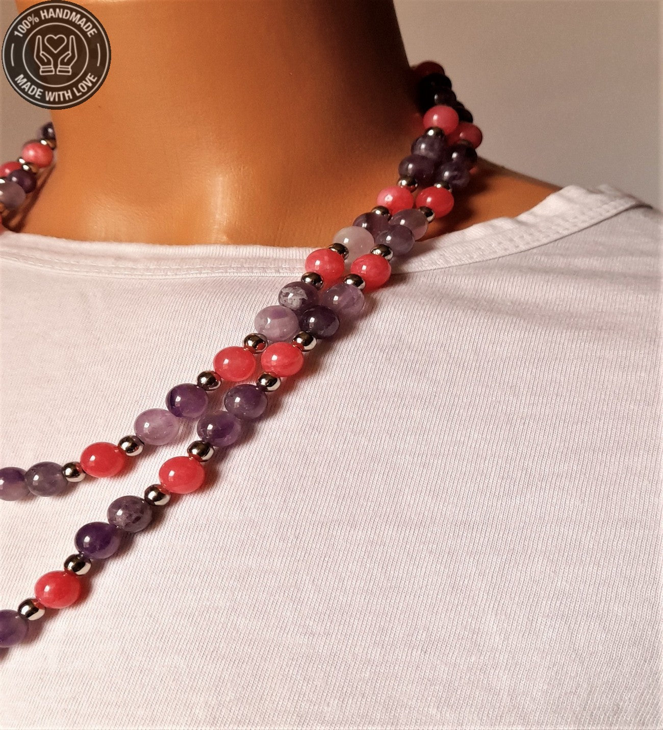 Ametist Akik Iki Sıralı Kolye