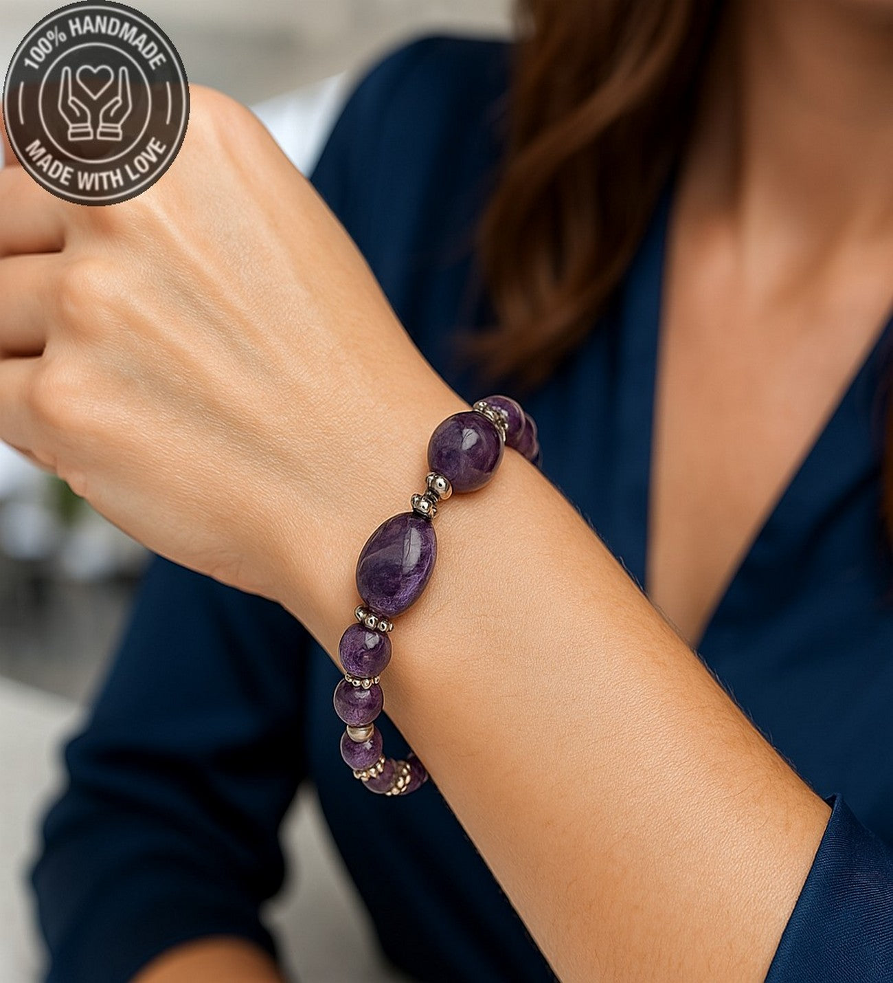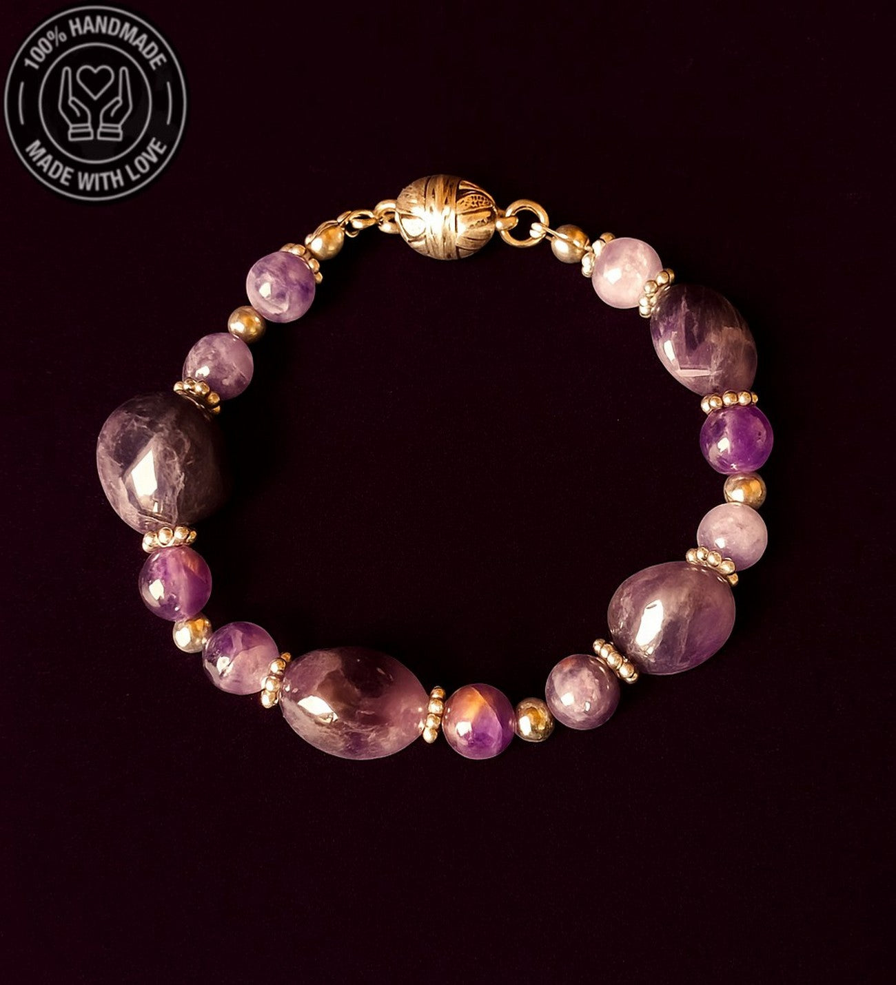 Bu bileklik, ametist taşının enerjisiyle ruhsal dengeyi, huzuru ve korumayı destekler. Taşların enerjisiyle hem burçlarınızla uyumu yakalayın, hem de günlük yaşamınızda denge ve huzura ulaşın.