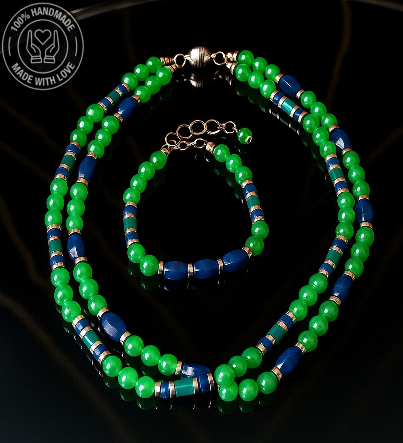 Aventurin Lapis Jasper 2 Sıralı Şans , Bolluk Ve Huzur Kolye Ve Bileklik Seti