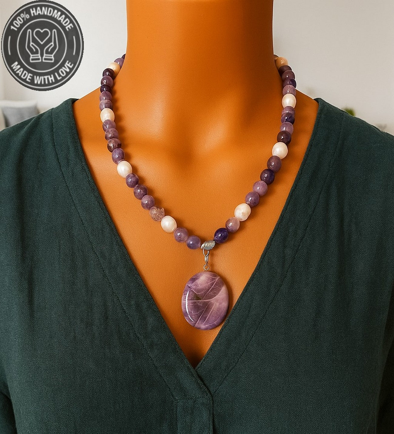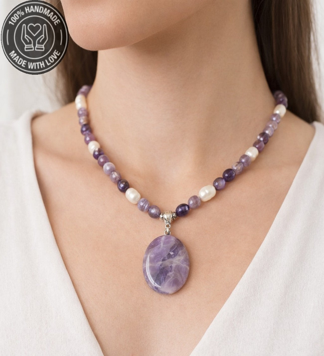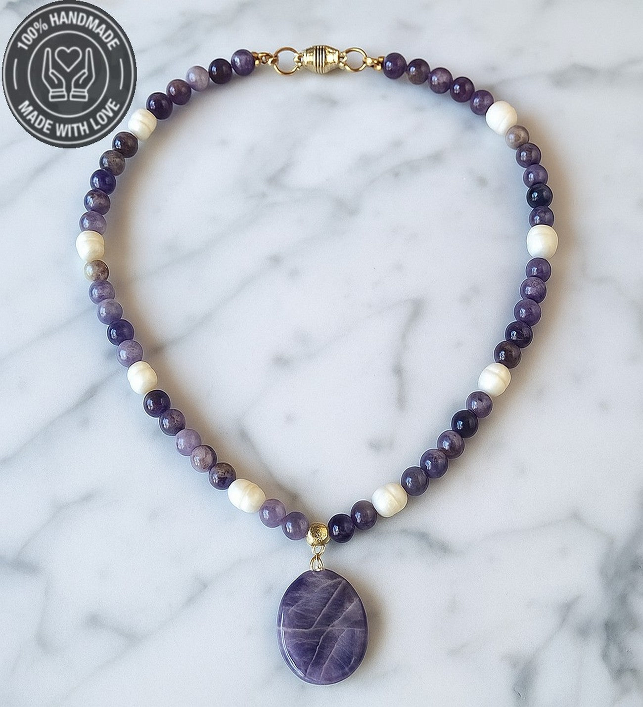 Ametist ve İnci'nin mucizevi enerjisiyle hayatınıza ruhsal denge ve zihinsel berraklık katmak için bu özel kolyeyi hemen edinin! İçsel huzuru bulmak ve sezgilerinizi güçlendirmek için bu eşsiz parçayı sepetinize ekleyin!