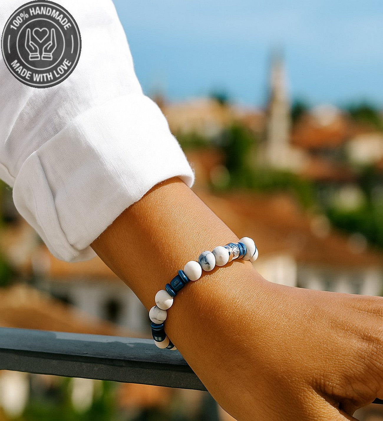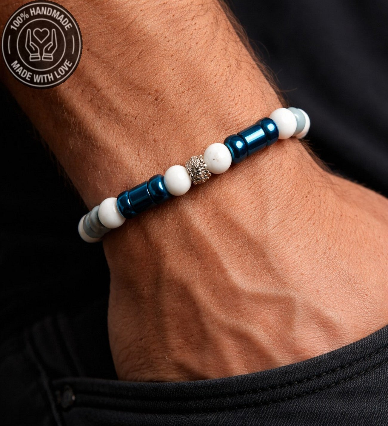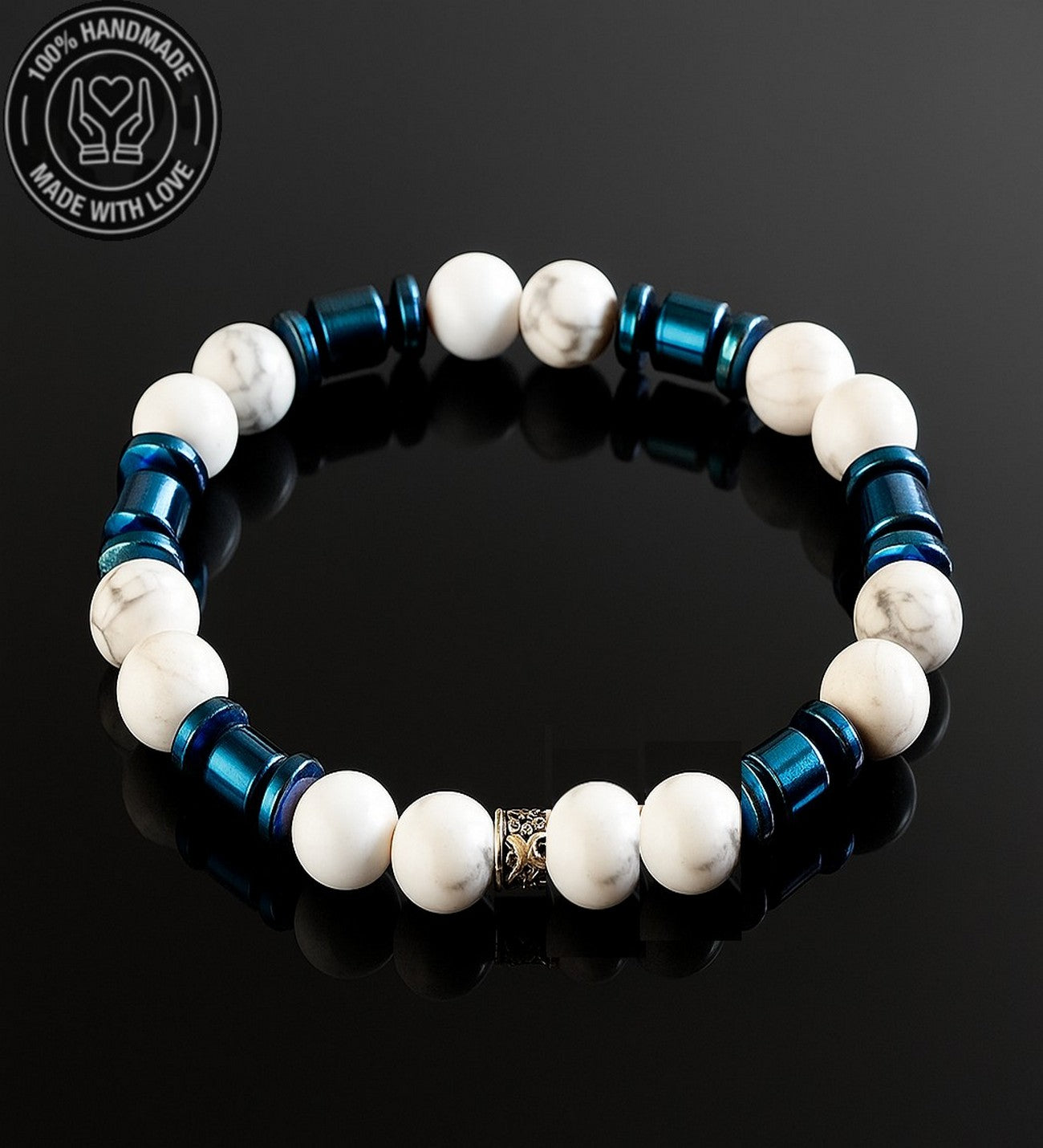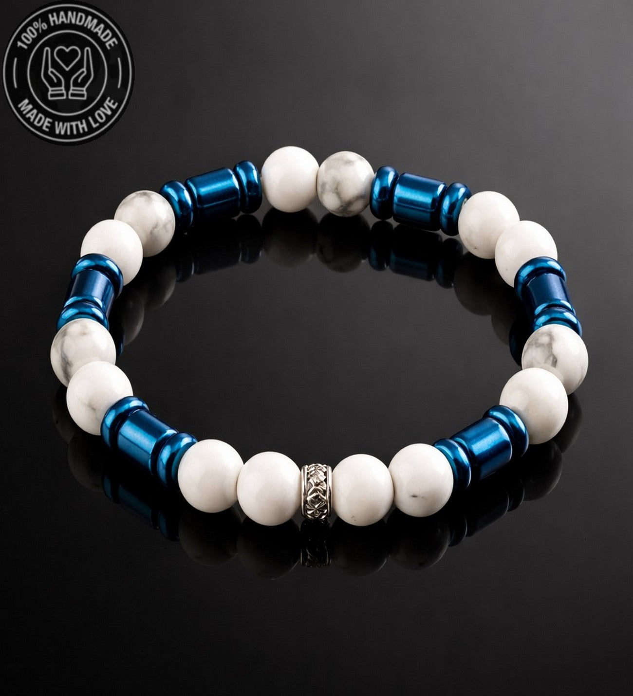 Havlit huzur ve sakinlik verirken, hematit güç ve denge sağlar. Aynı zamanda hematitin negatif enerjilere karşı koruyucu olduğuna inanılır. Bileklik standart boyutta (yaklaşık 18-19 cm) olup, farklı bileklik ölçüleri için lütfen iletişime geçin.