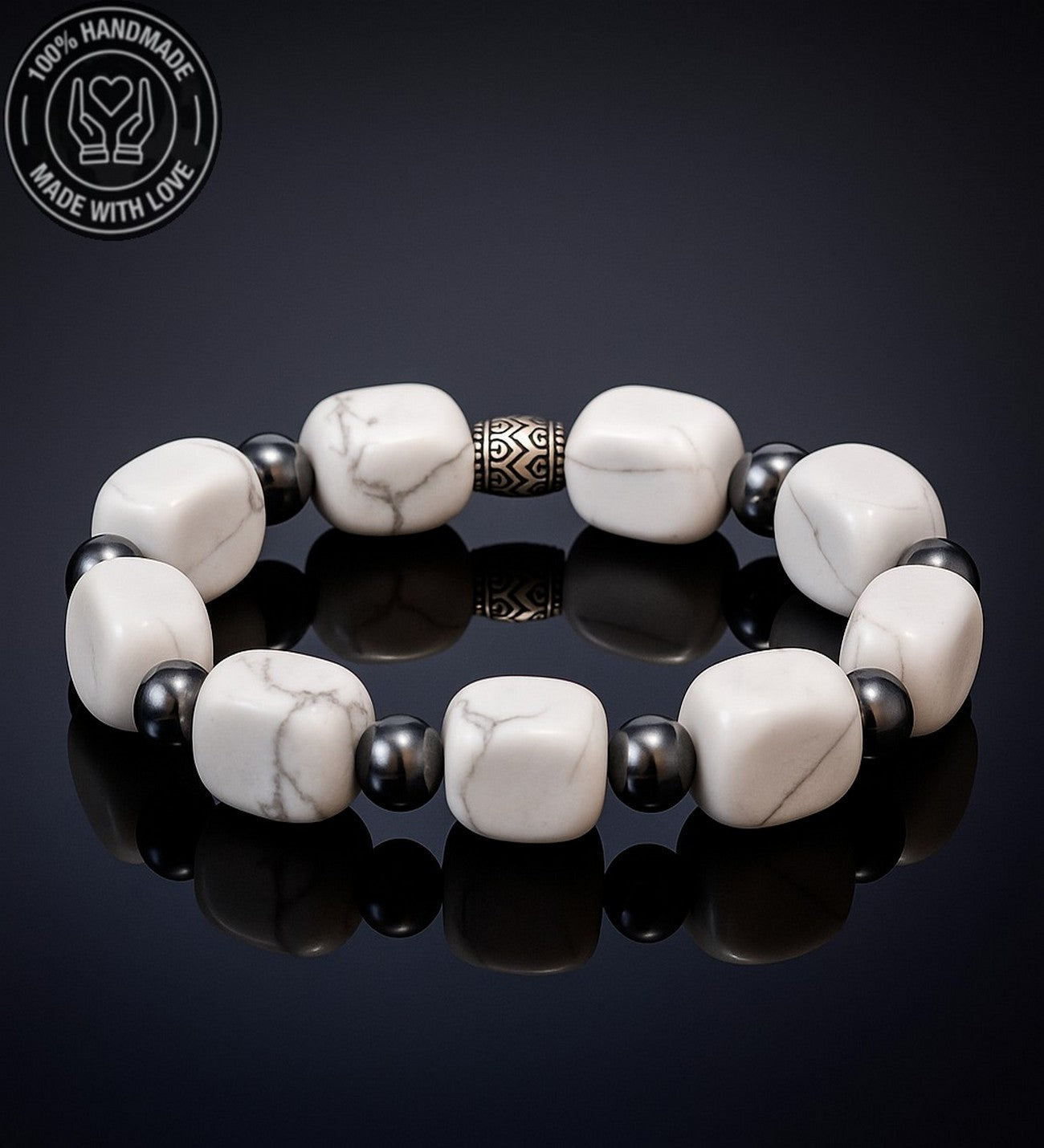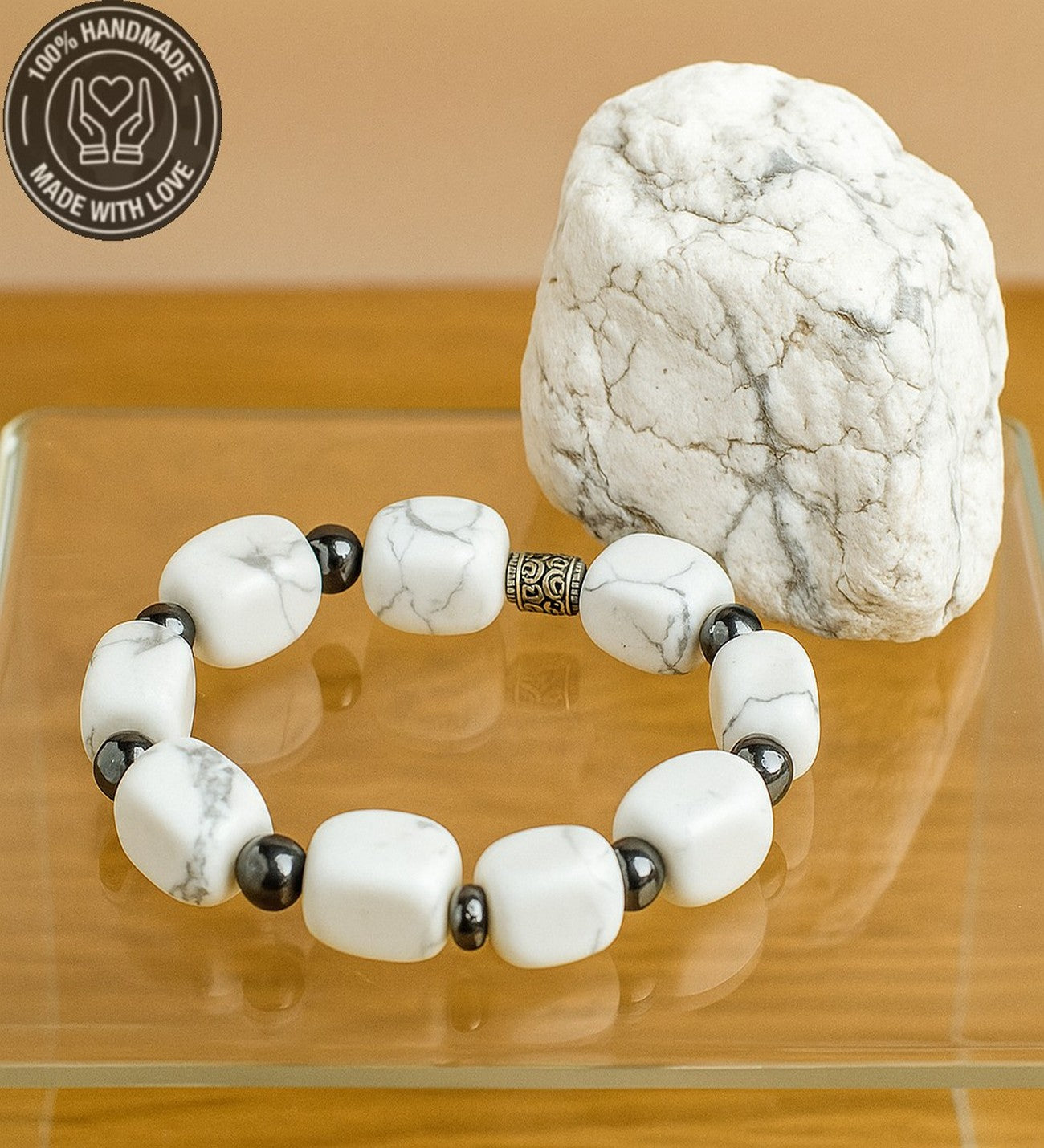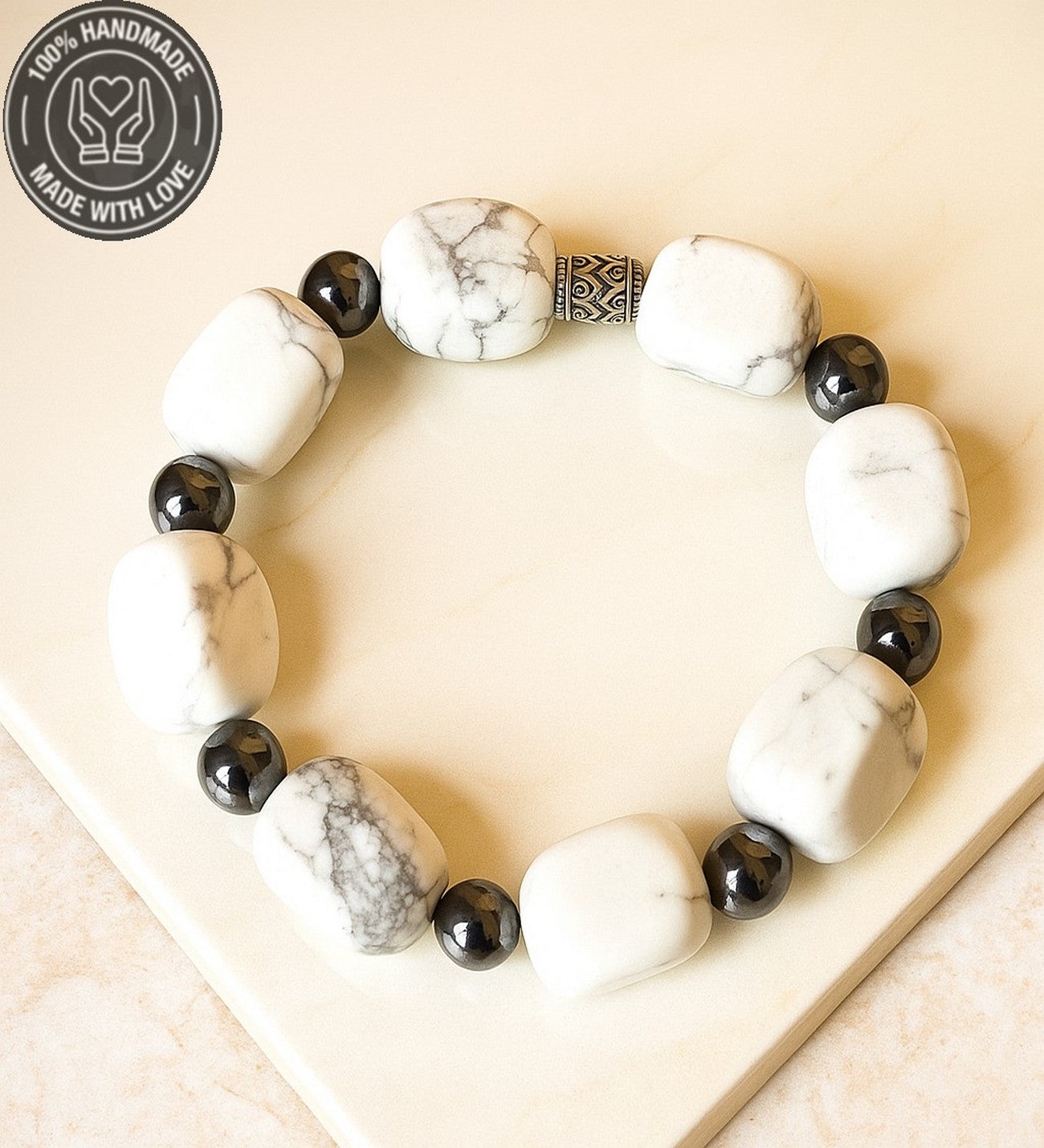 Bu bileklik, havlit taşının enerjisiyle huzuru, iletişimi ve dengeyi destekler. Taşların enerjisiyle hem burçlarınızla uyumu yakalayın, hem de günlük yaşamınızda denge ve huzura ulaşın.