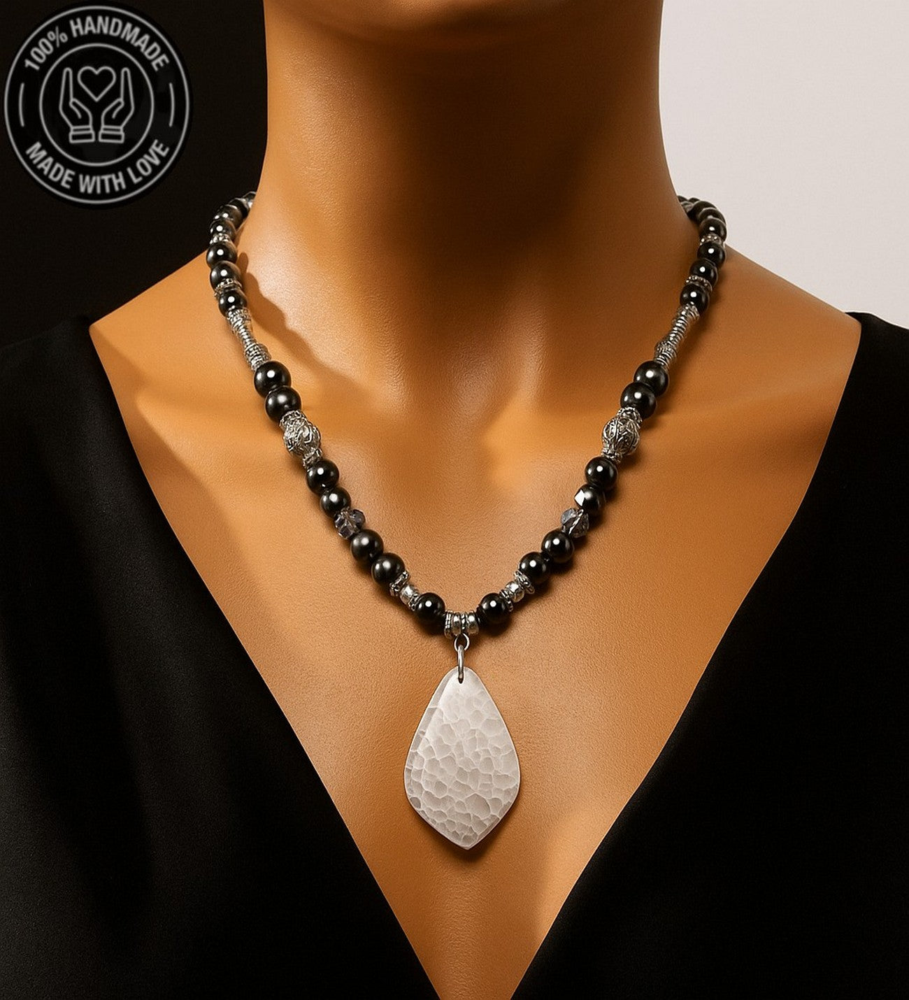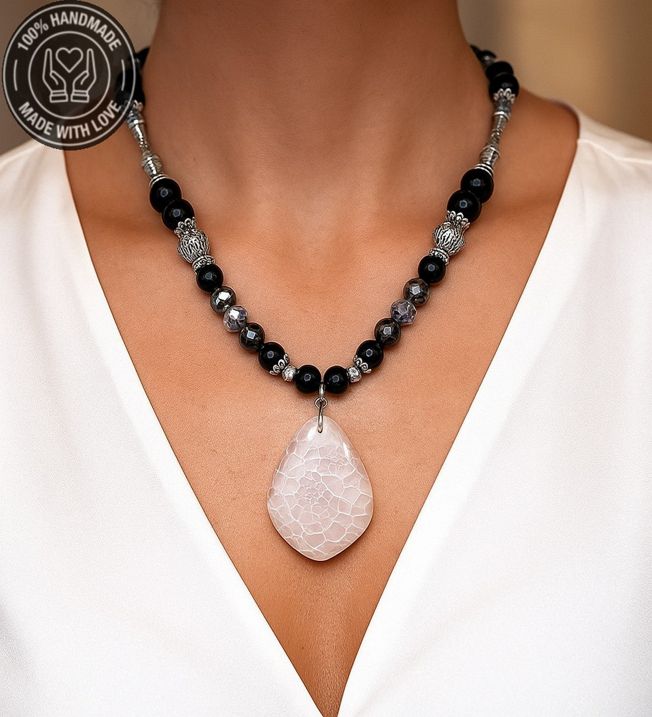 Hematit, Oniks ve Kristal'in mucizevi enerjisiyle hayatınıza güç, zihinsel netlik ve koruma katmak için bu özel kolyeyi hemen edinin! İçsel huzuru bulmak ve hedeflerinize odaklanmak için bu eşsiz parçayı sepetinize ekleyin!