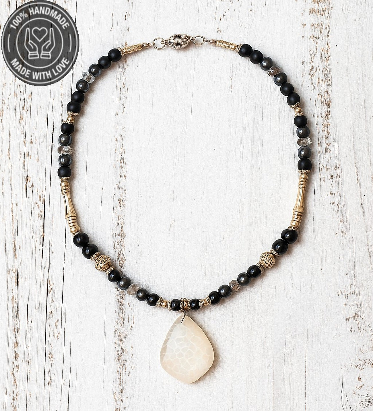 Hematit Oniks Kristal Enerji Zihin Ve Nazardan Koruma Kolyesi