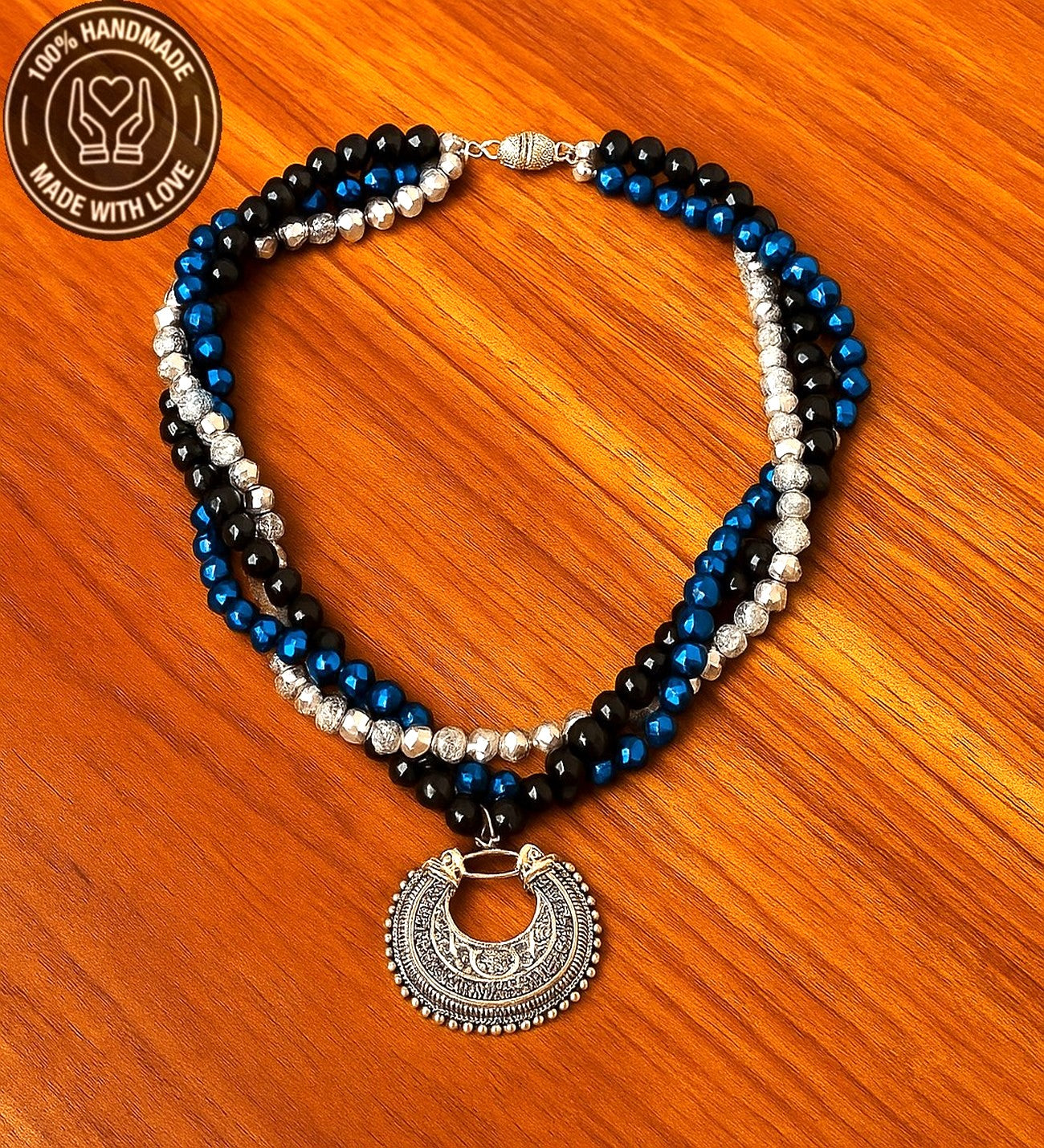 Hematit Oniks Kristal Üç Sıralı Enerji Zihin Ve Nazardan Koruma Kolyesi