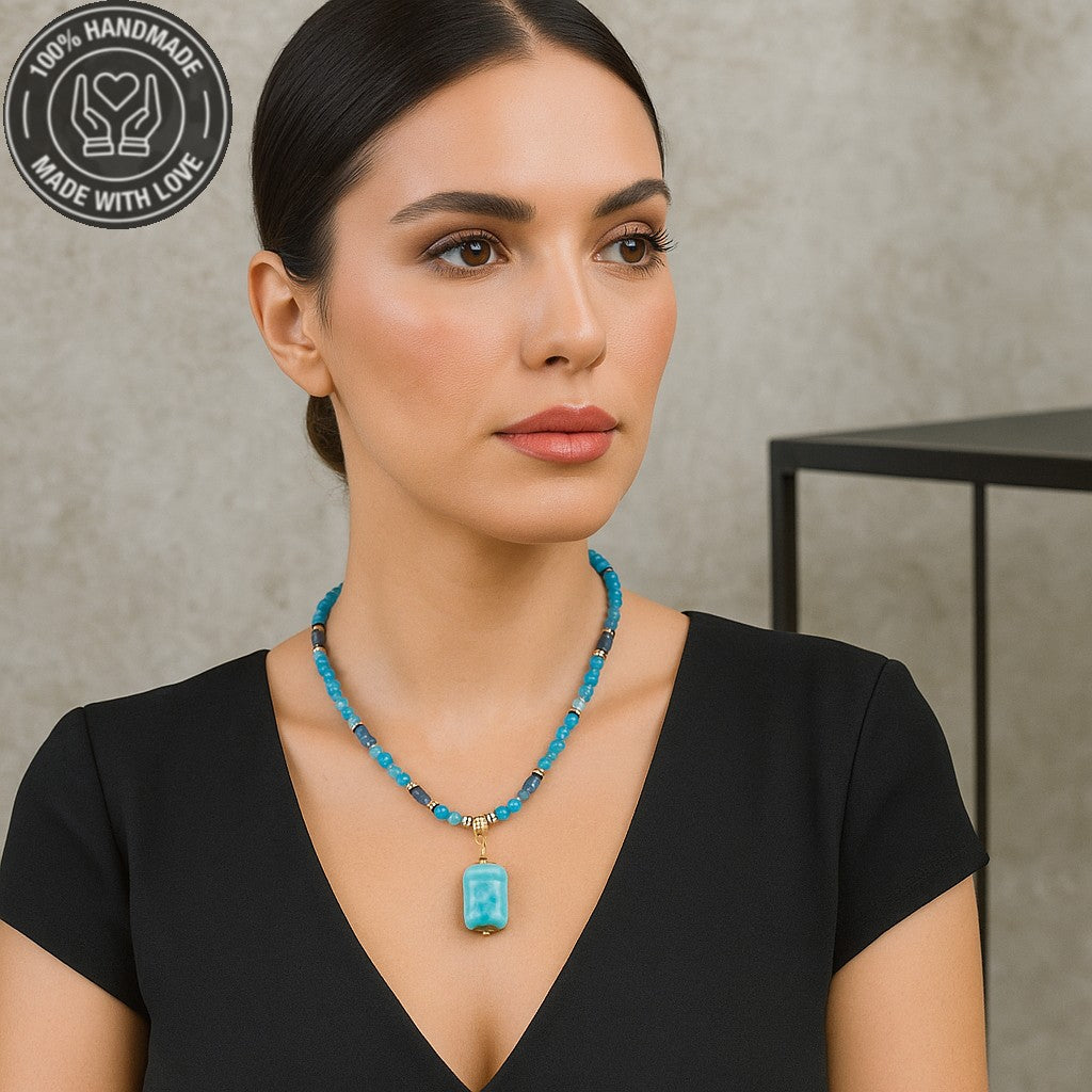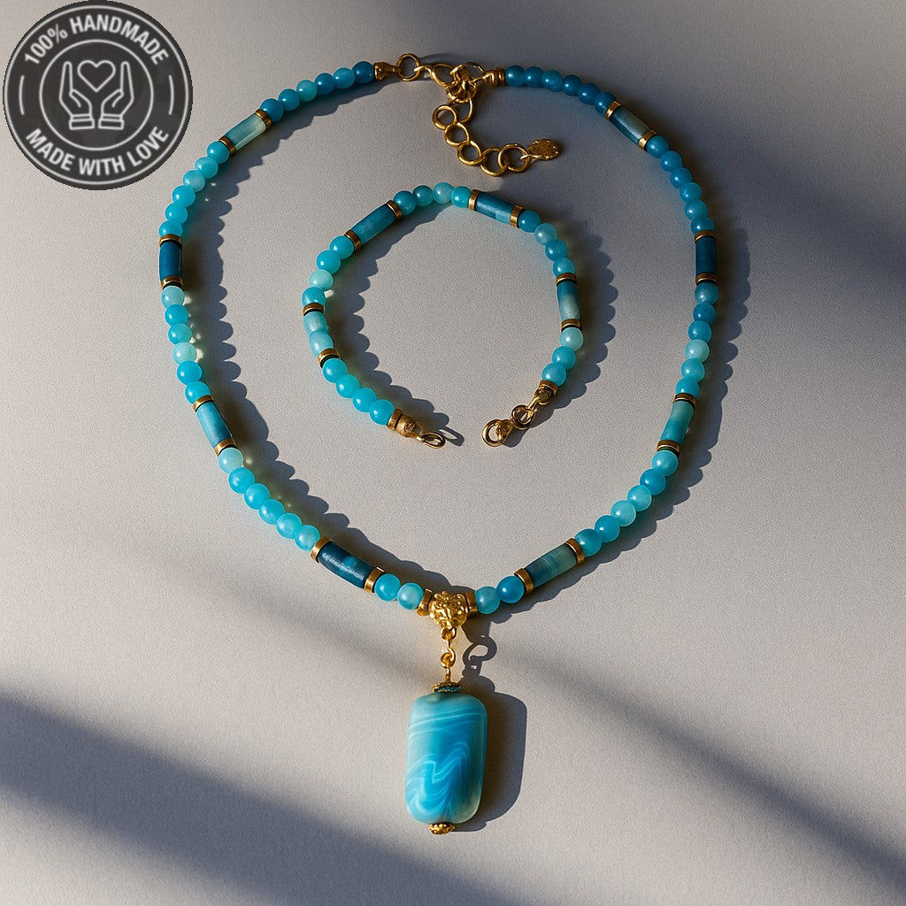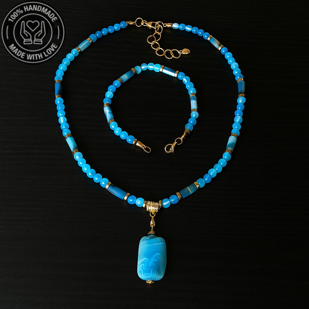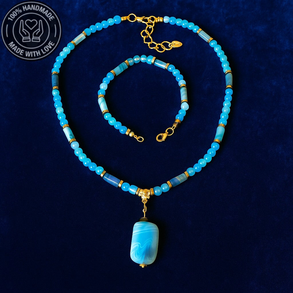 Huzur, Nazar Koruması Ve İletişim Gücü İçin Mavi Akik Kolye Bileklik Seti