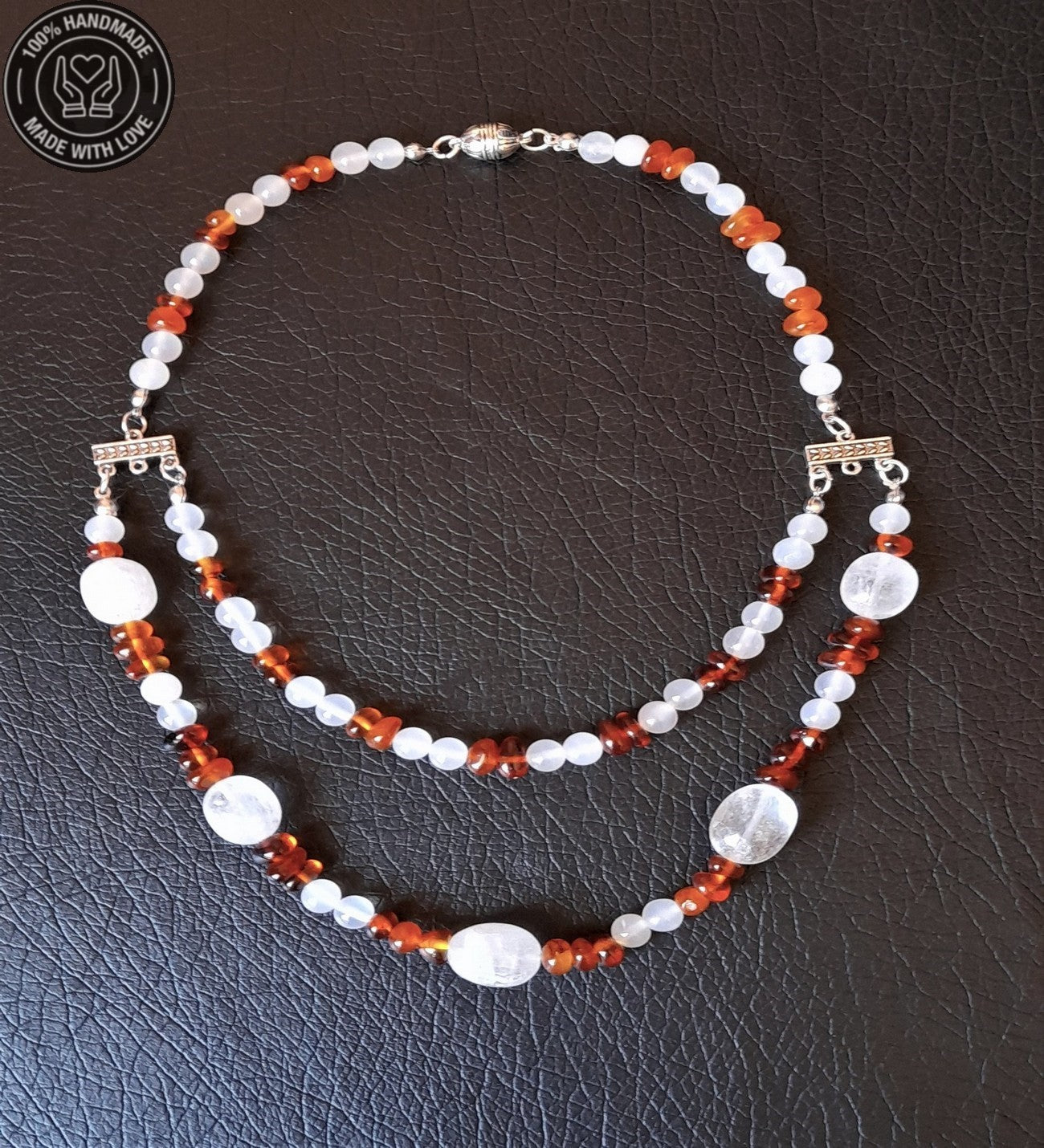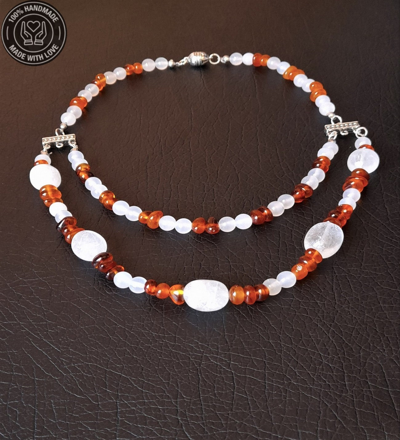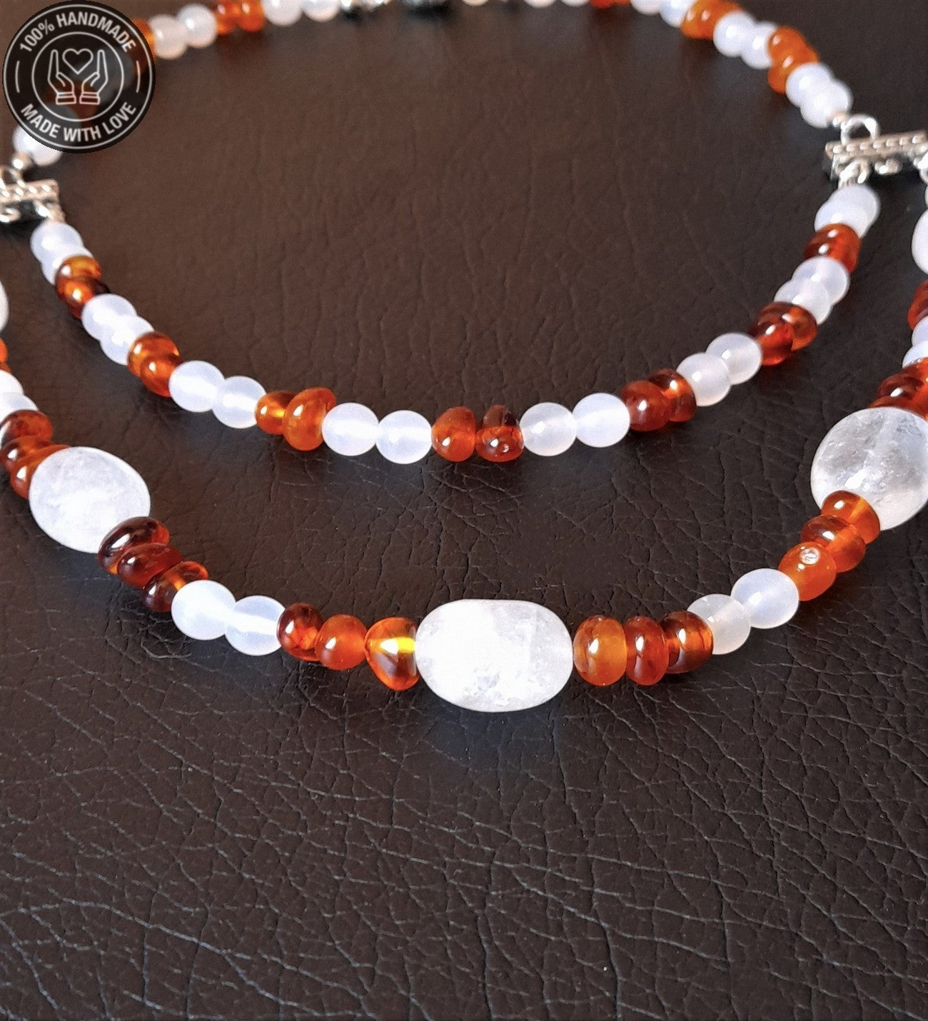 Kehribar Akik Iki Sıralı Şifa Enerji Ve Nazardan Korunma Kolyesi