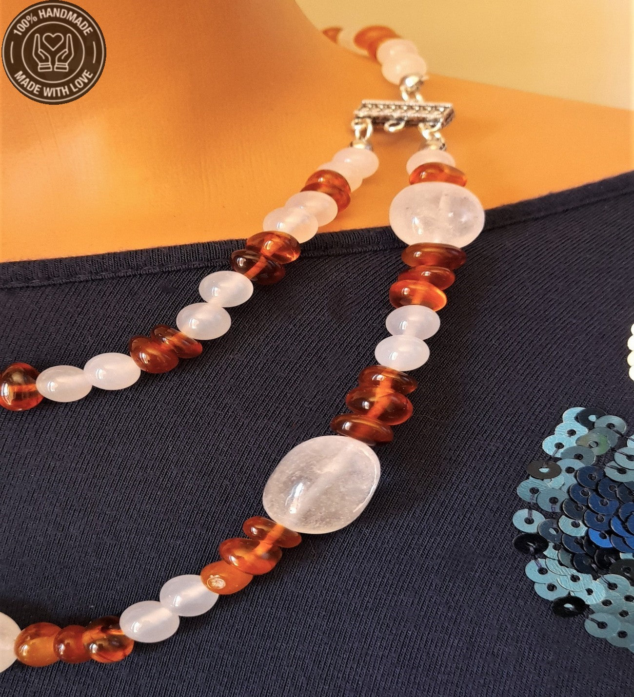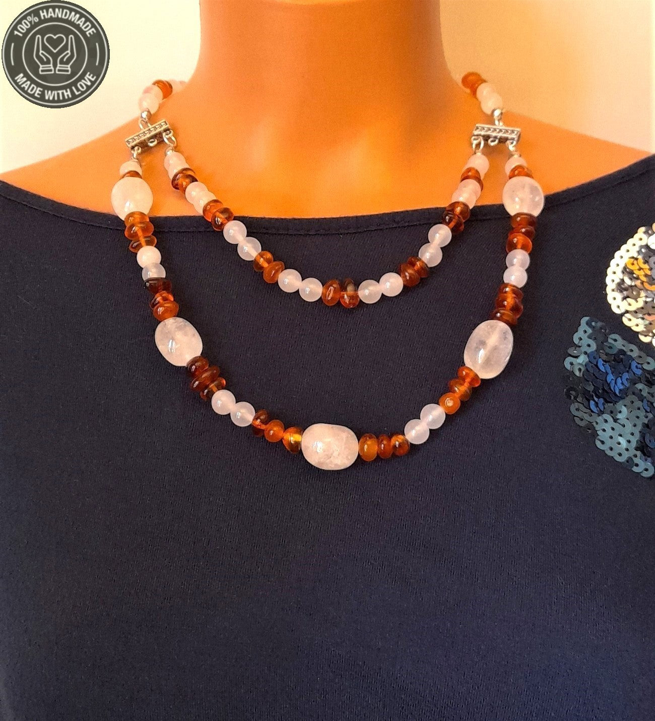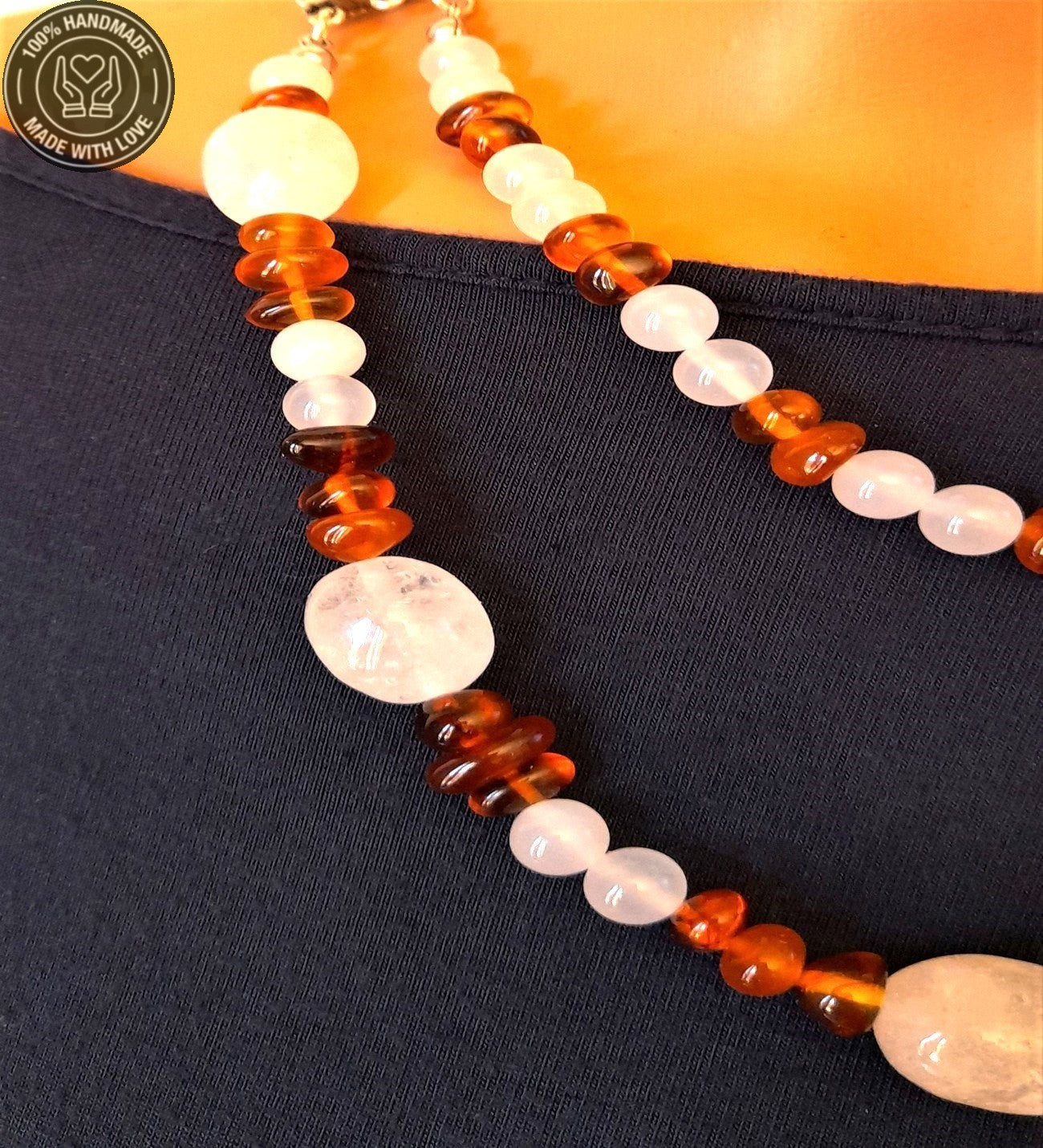 Kehribar Akik Iki Sıralı Şifa Enerji Ve Nazardan Korunma Kolyesi