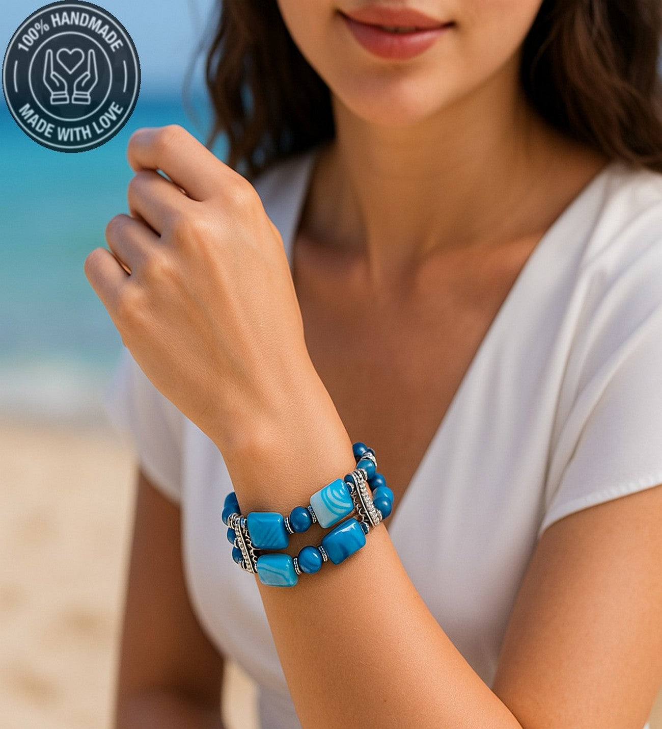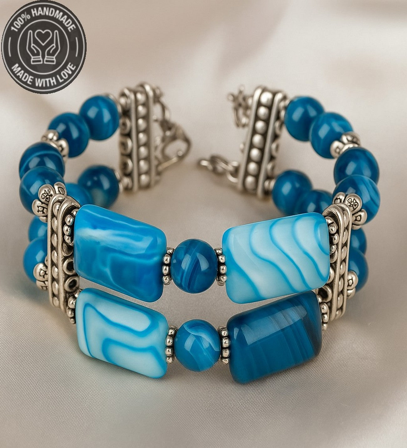 Bu eşsiz premium serisi mavi akik iki sıralı bilekliği hemen sipariş verin, hem tarzınızı tamamlayın hem de doğal taşların gücünü hissedin!