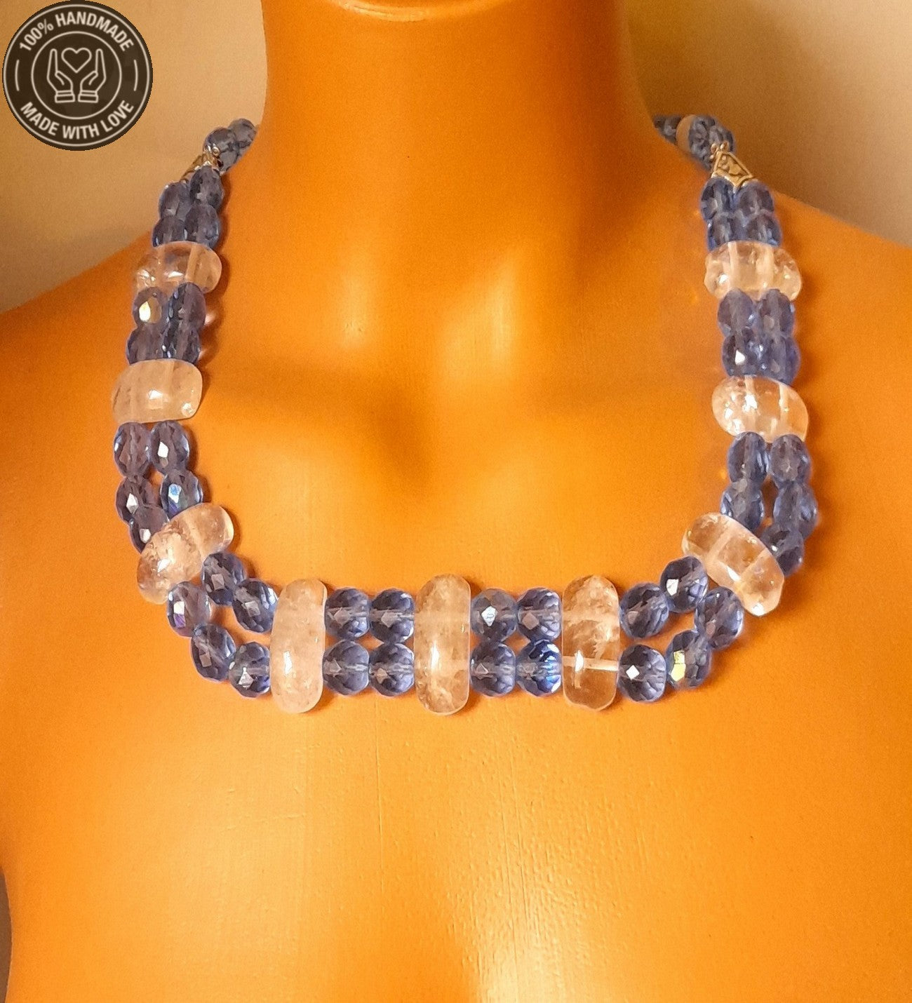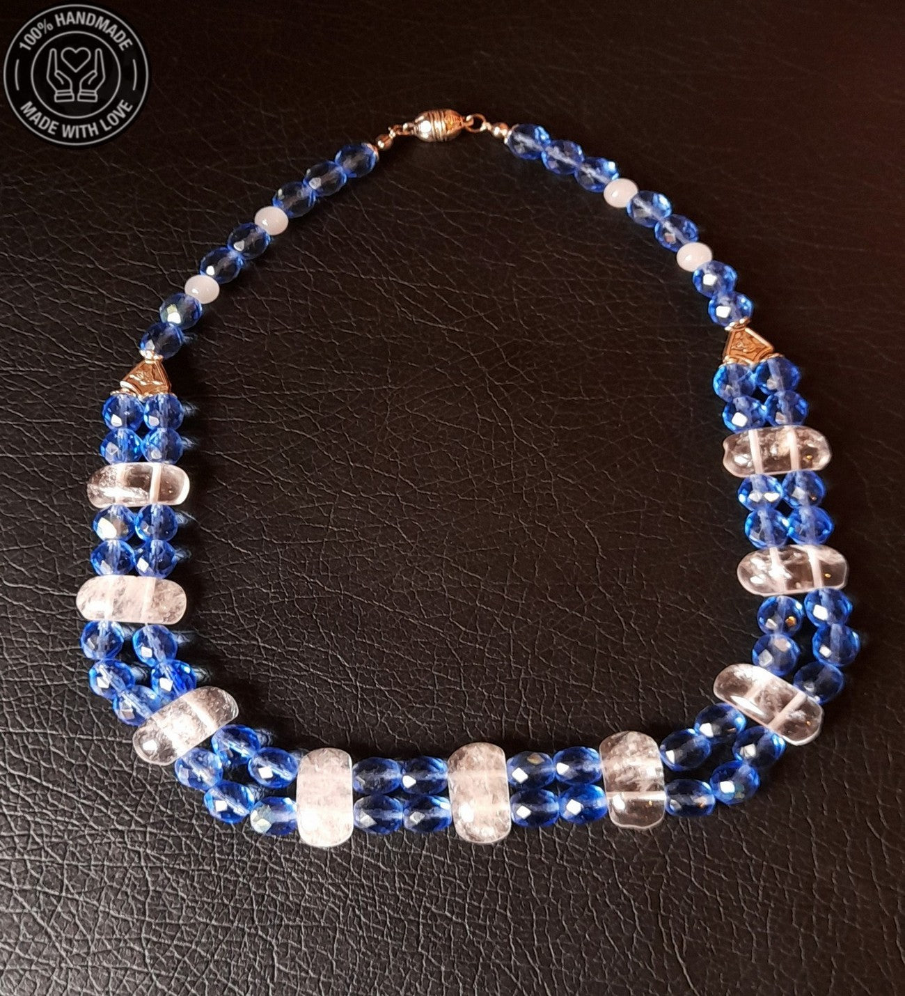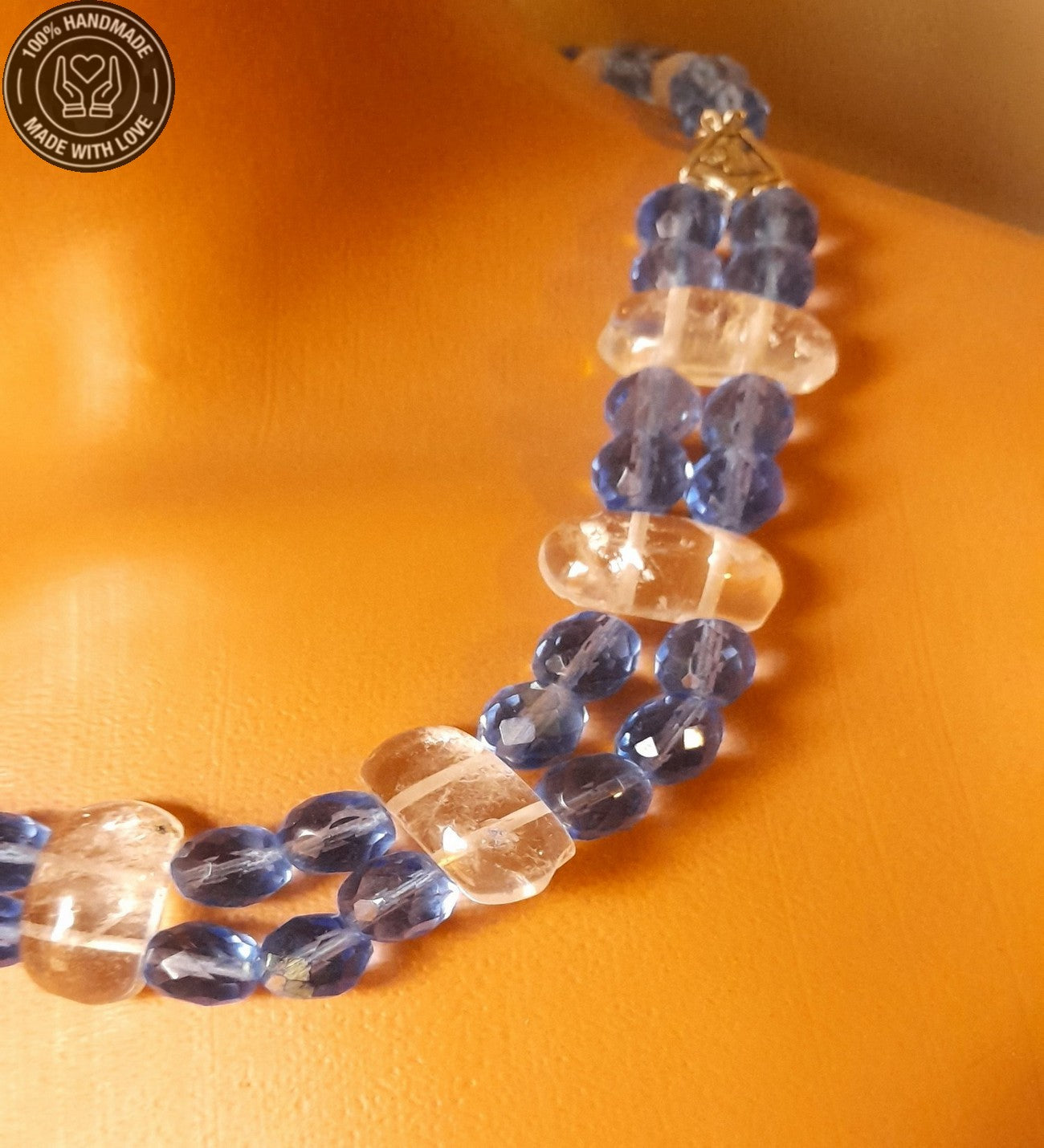 Mavi Kuvars Dumanlı Kuvars Özel Seri Iki Sıralı Topraklama, Ifade Ve Huzur Kolyesi