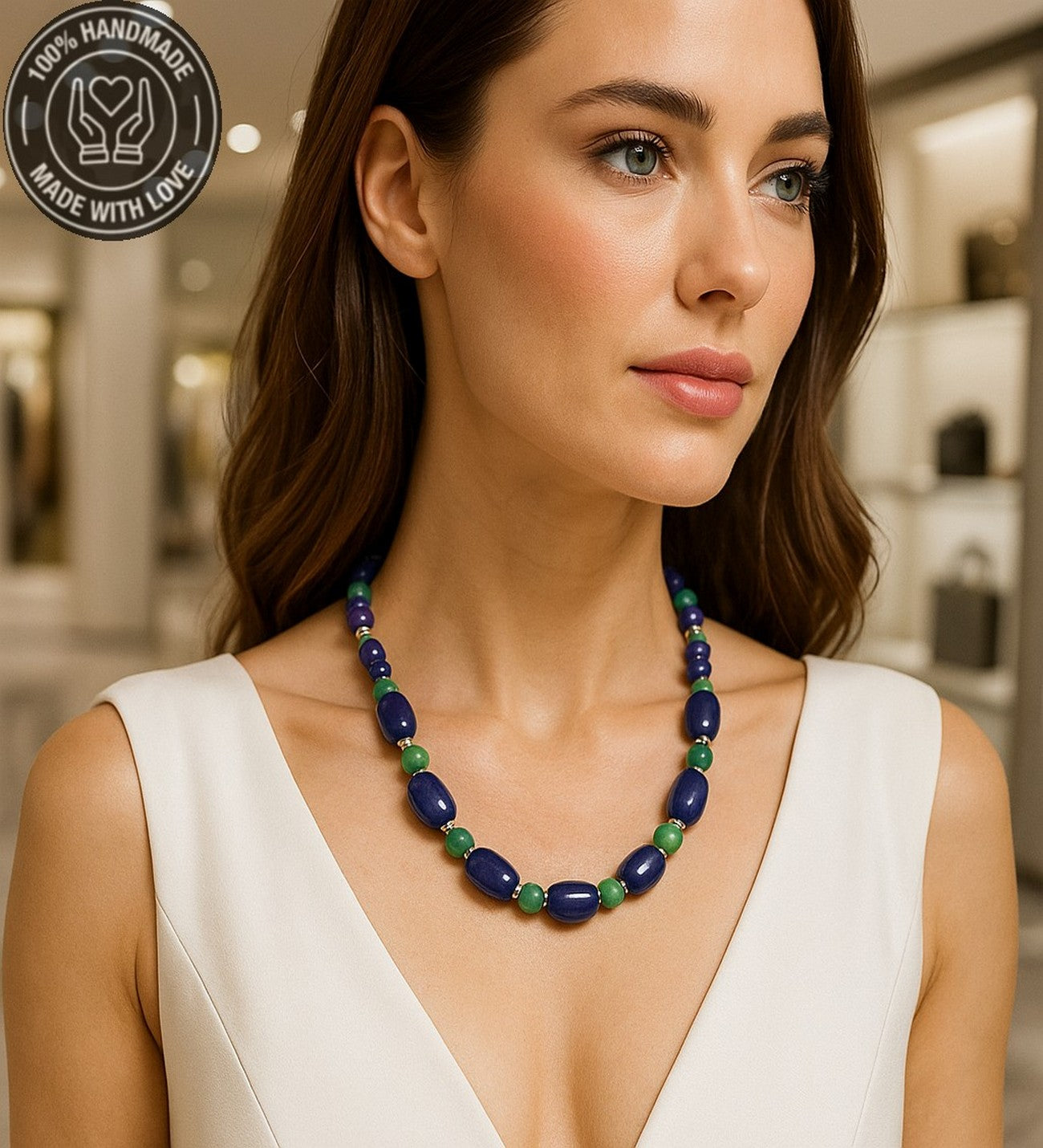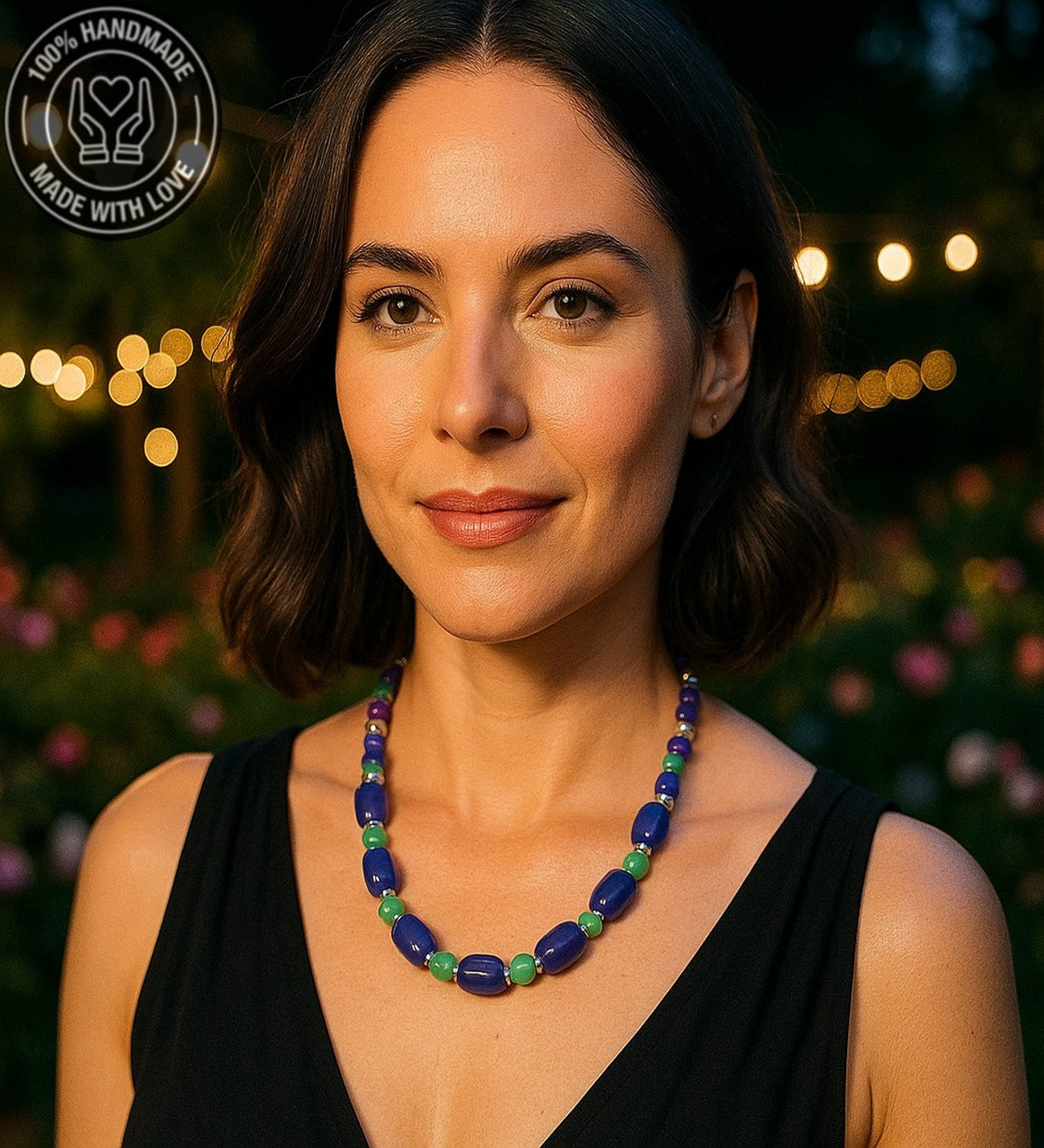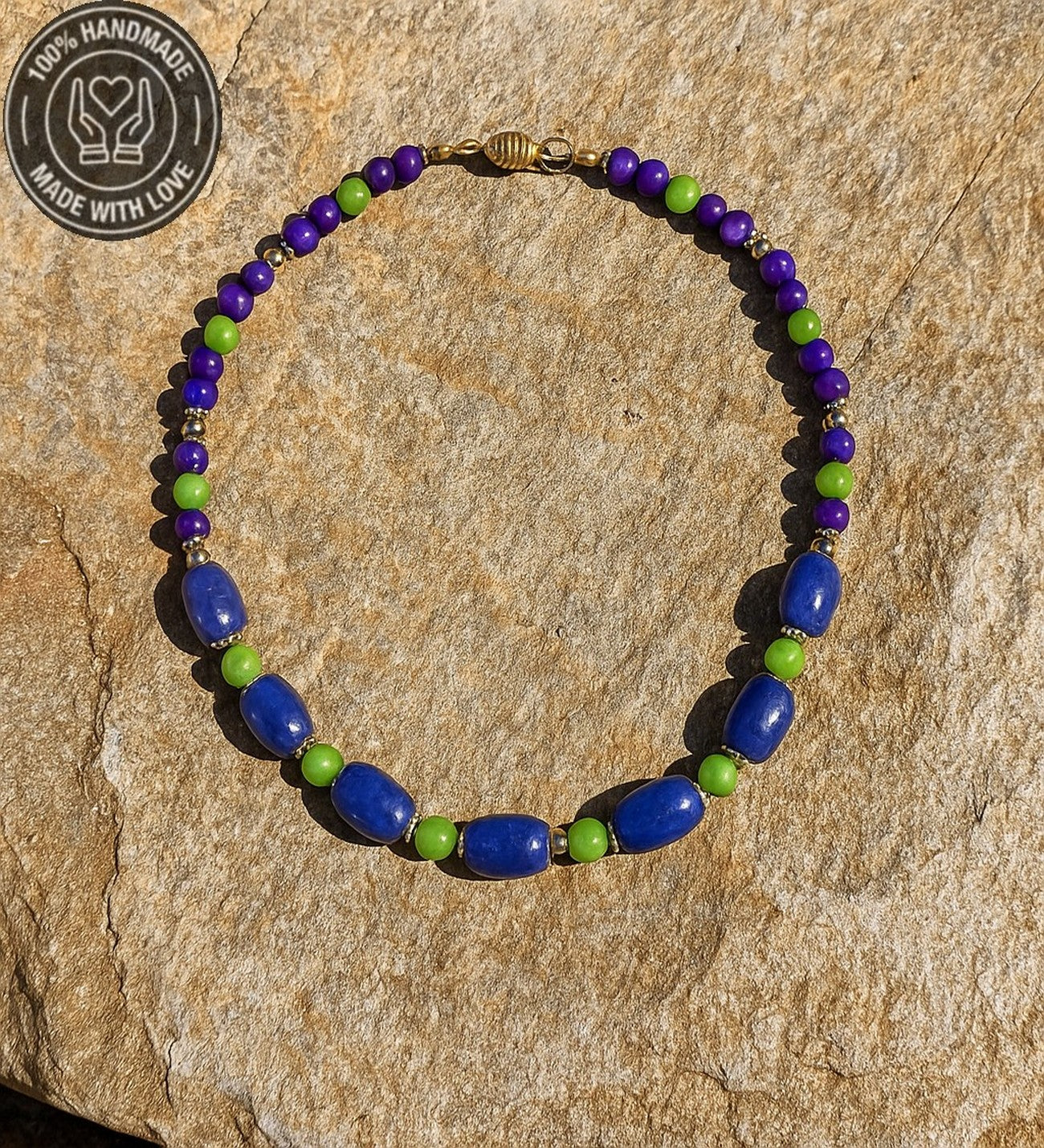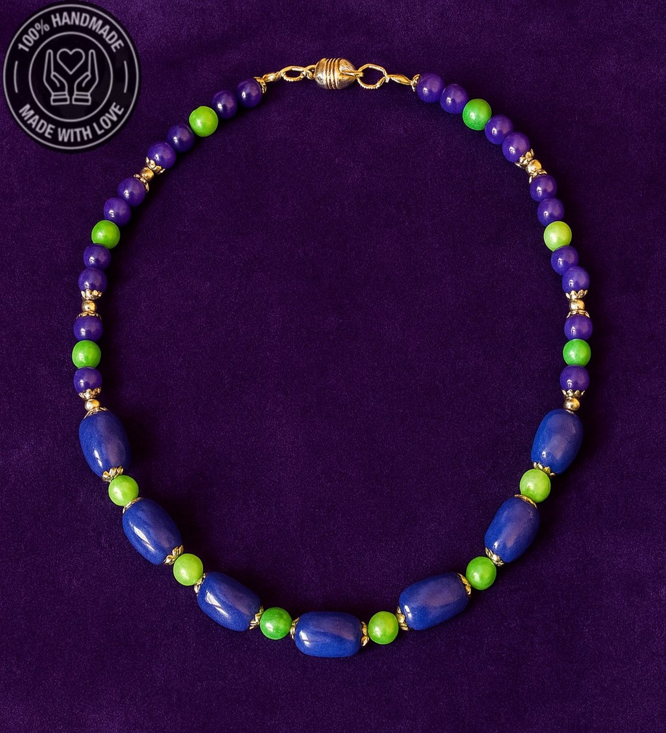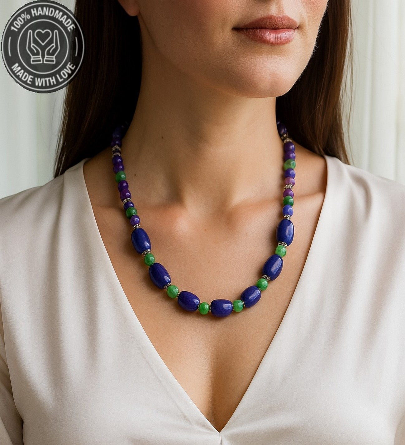 Özenle seçilmiş Mor ve Yeşil Ceyt taşlarıyla hazırlanan bu özel kolye, el emeğiyle hayat buldu. Ruhunuza denge katacak bu zarif tasarım, size özel bir enerji sunuyor.