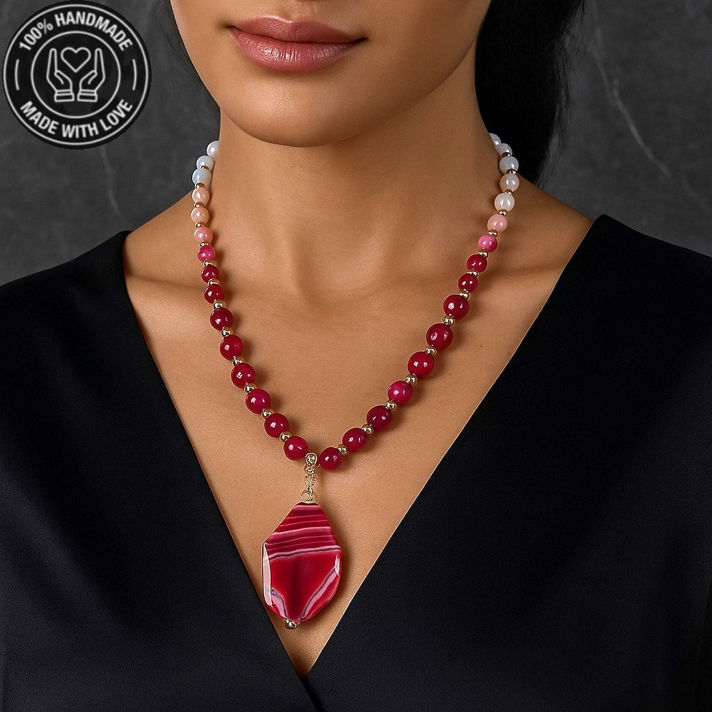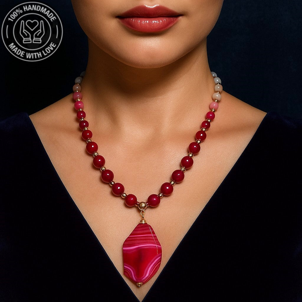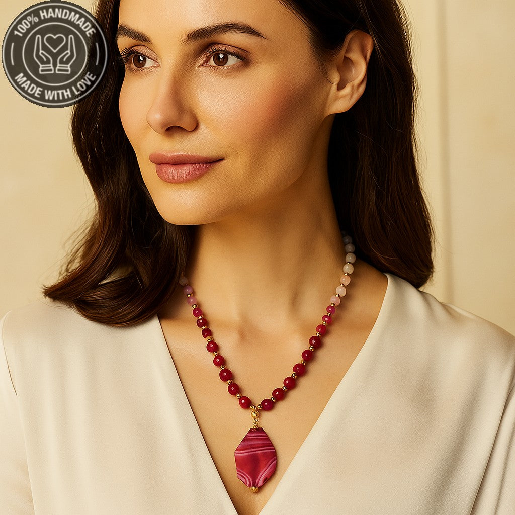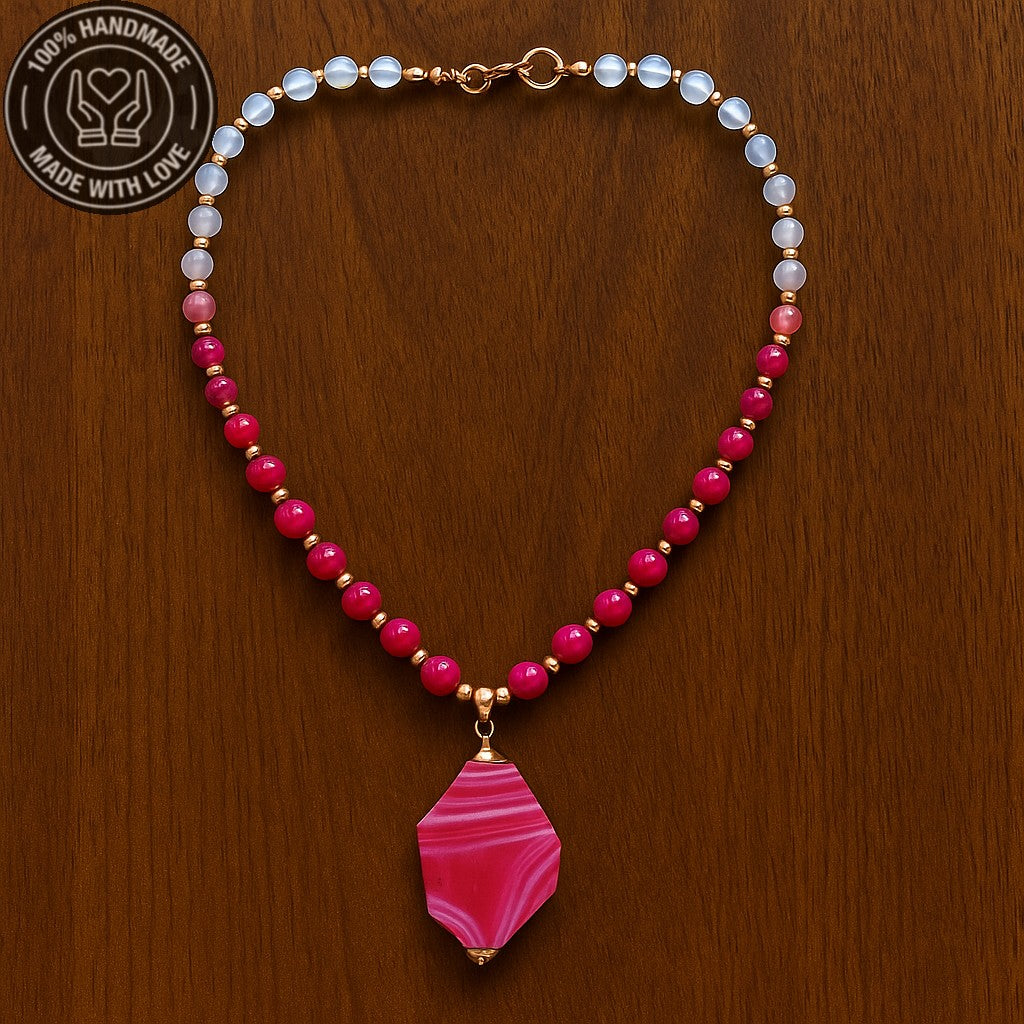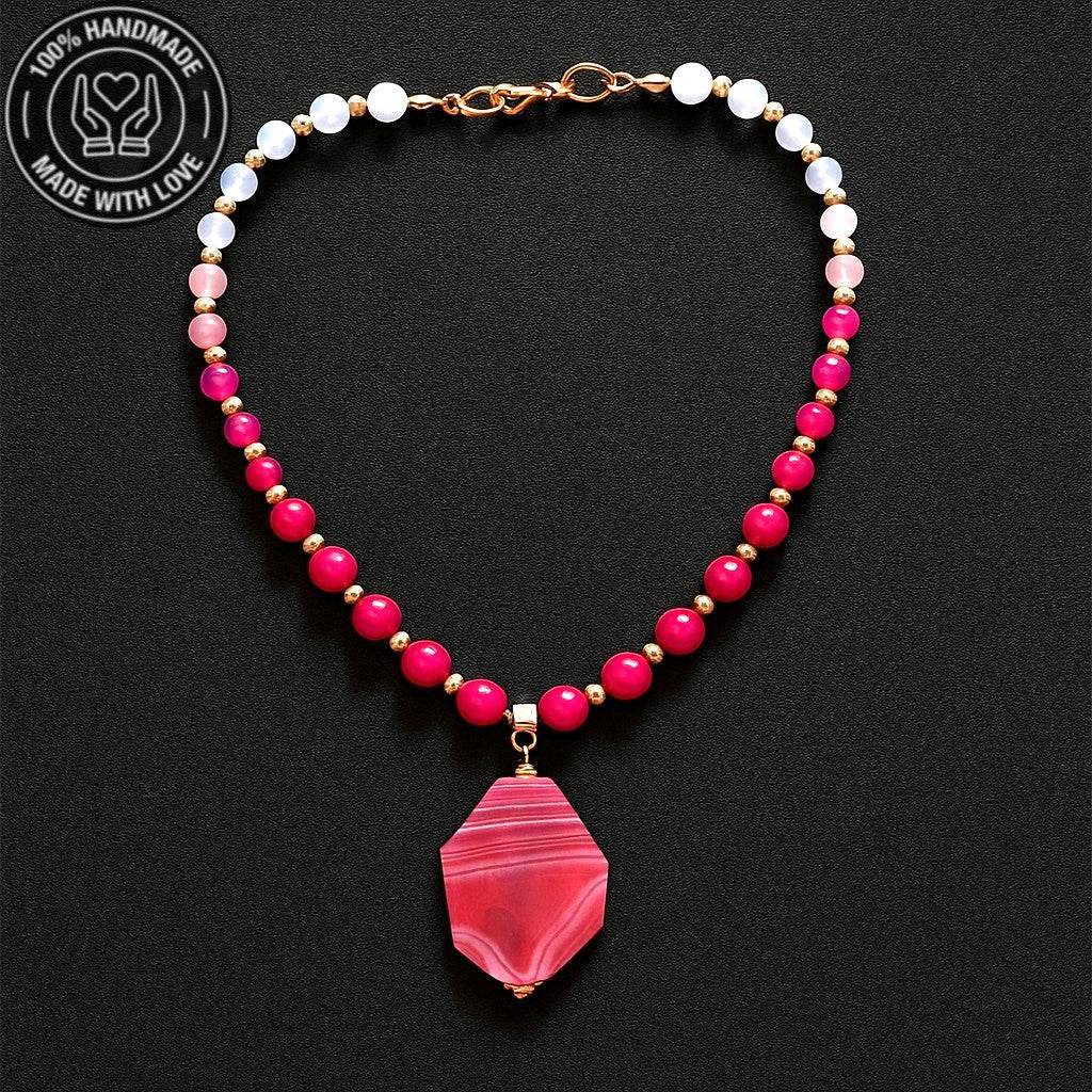 Pembe Akik Ceyt Sevgi Uyum Ve Şifa Kolyesi