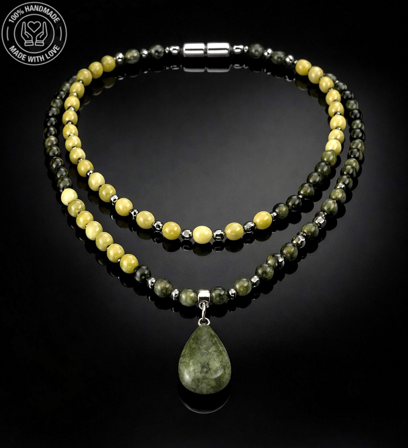 Peridot Yeşim Iki Sıralı Canlılık, Neşe Ve Pozitif Enerji Kolyesi