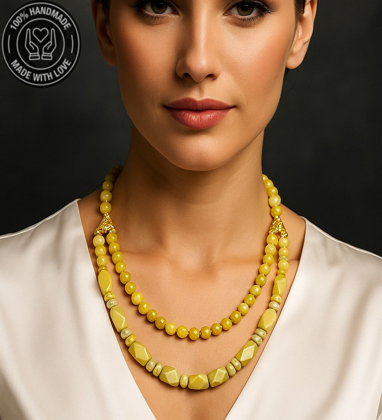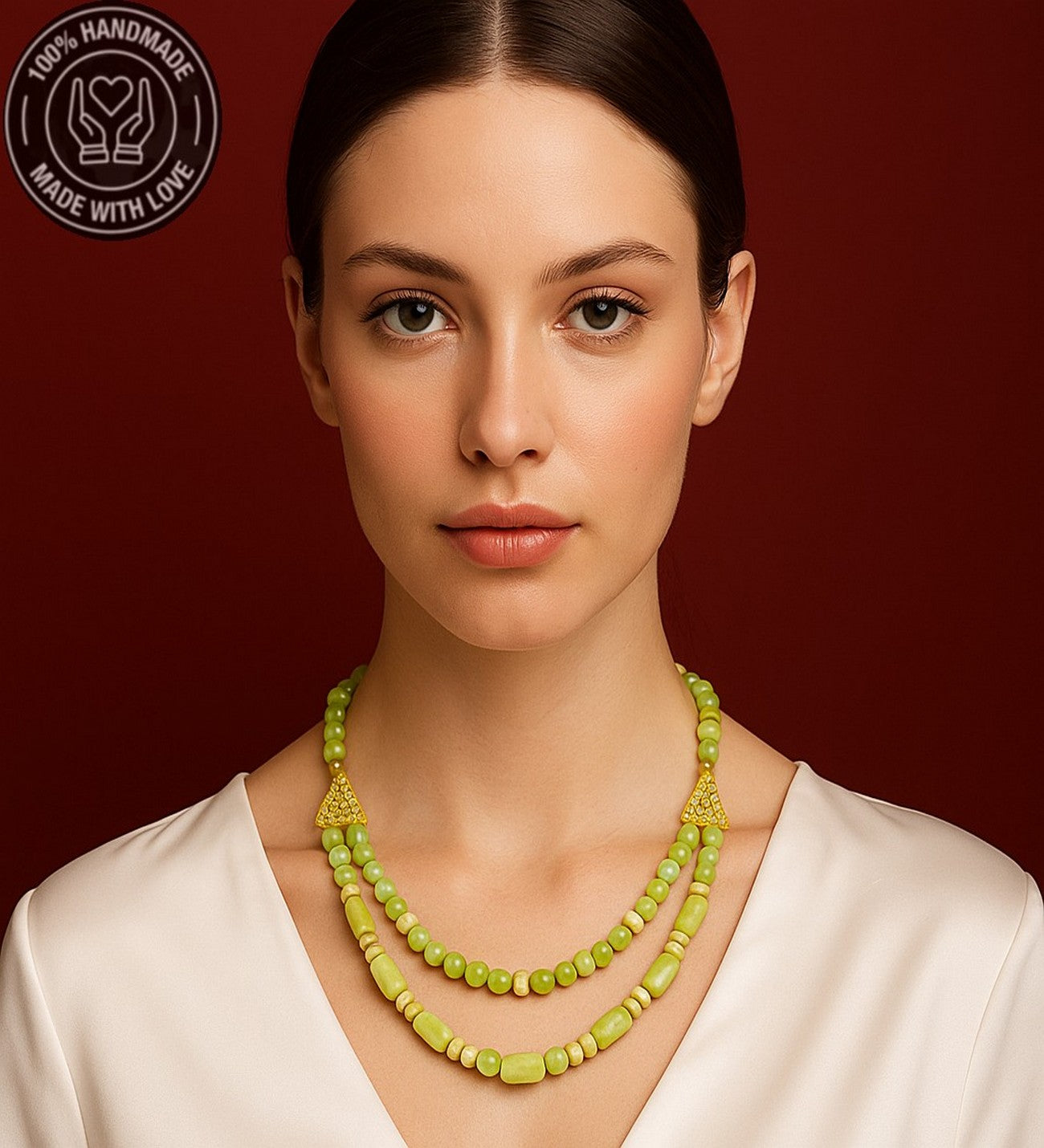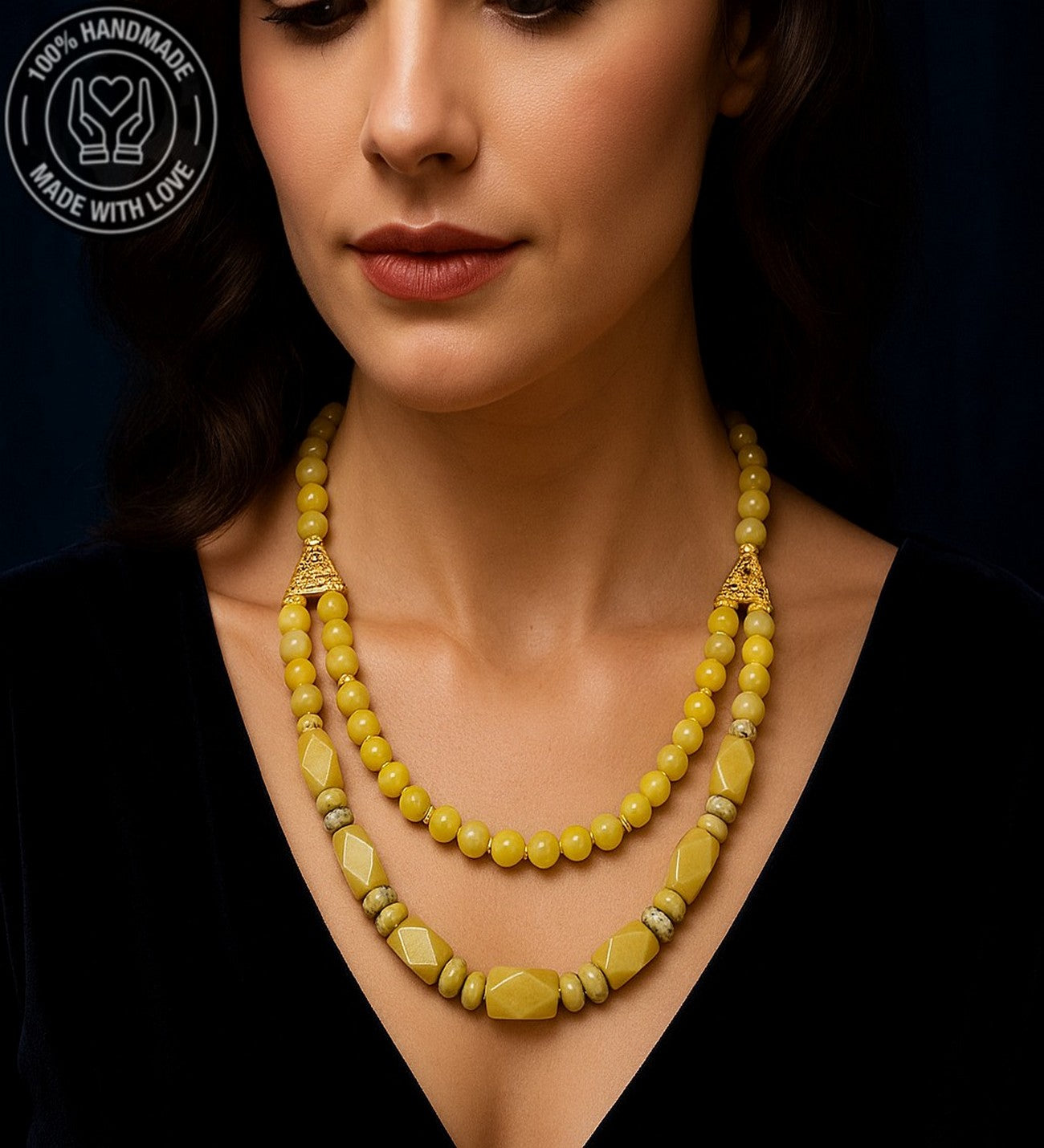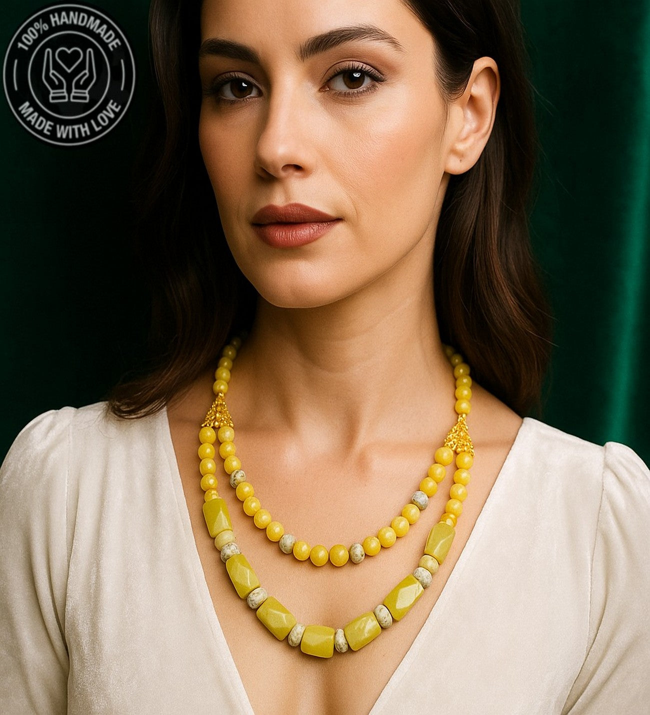 Doğal taşın pozitif enerji veren ve iç huzuru destekleyici etkilerini çift sıralı şıklıkla boynunuzda taşıyın.