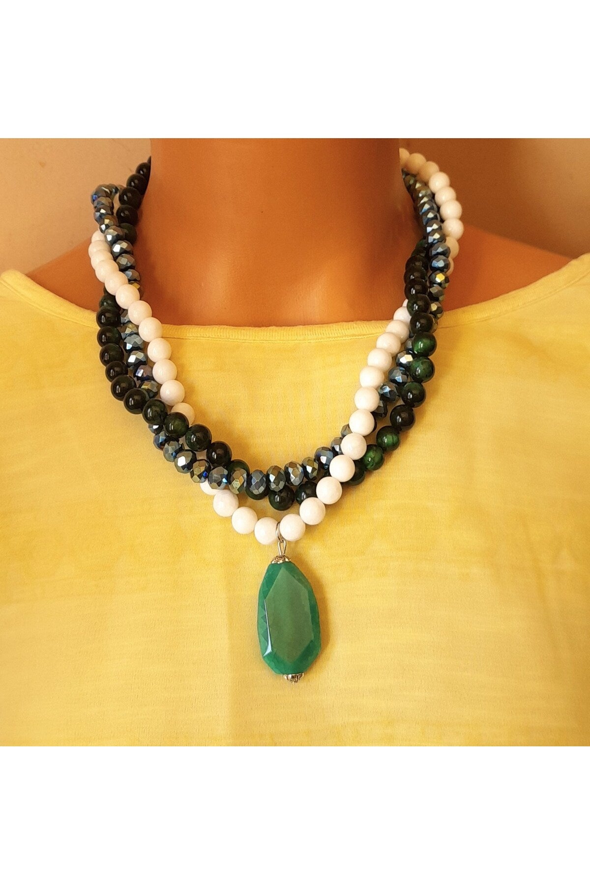 Özenle seçilmiş Kaplan Gözü, Akik ve Kristal taşlarıyla hazırlanan bu özel Premium seri kolye, el emeğiyle hayat buldu. Ruhunuza denge katacak bu zarif tasarım, size özel bir enerji sunuyor.