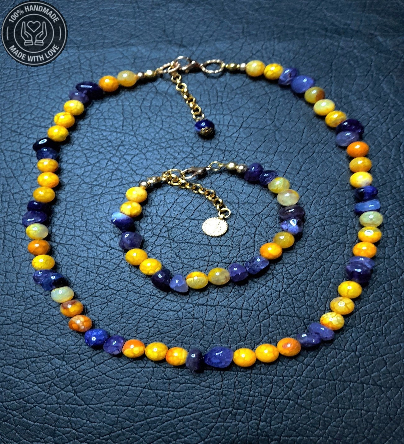 Uyumlu kolye ve bileklik tasarımı ile canlı ve anlamlı bir bütünlük sağlar.