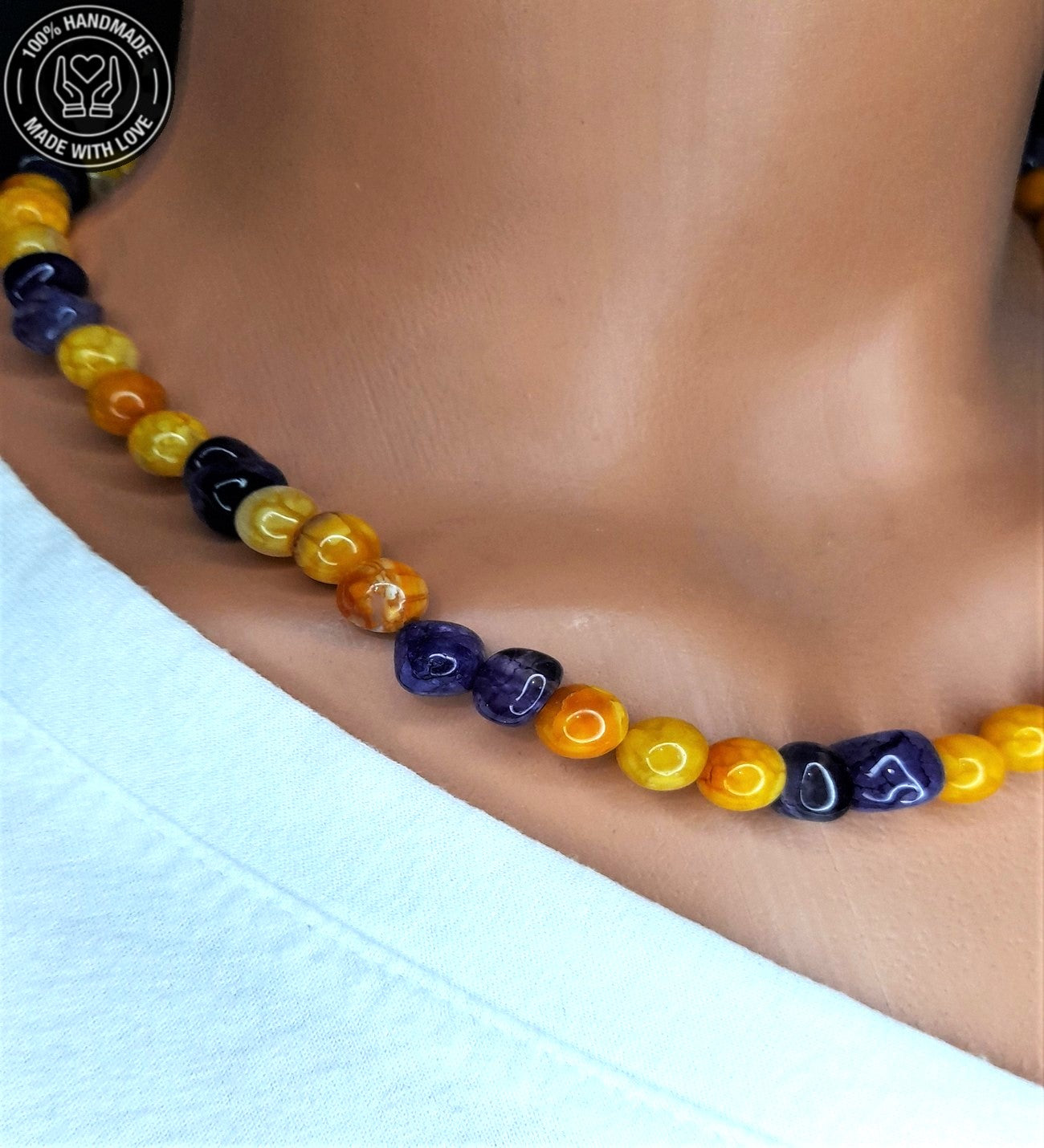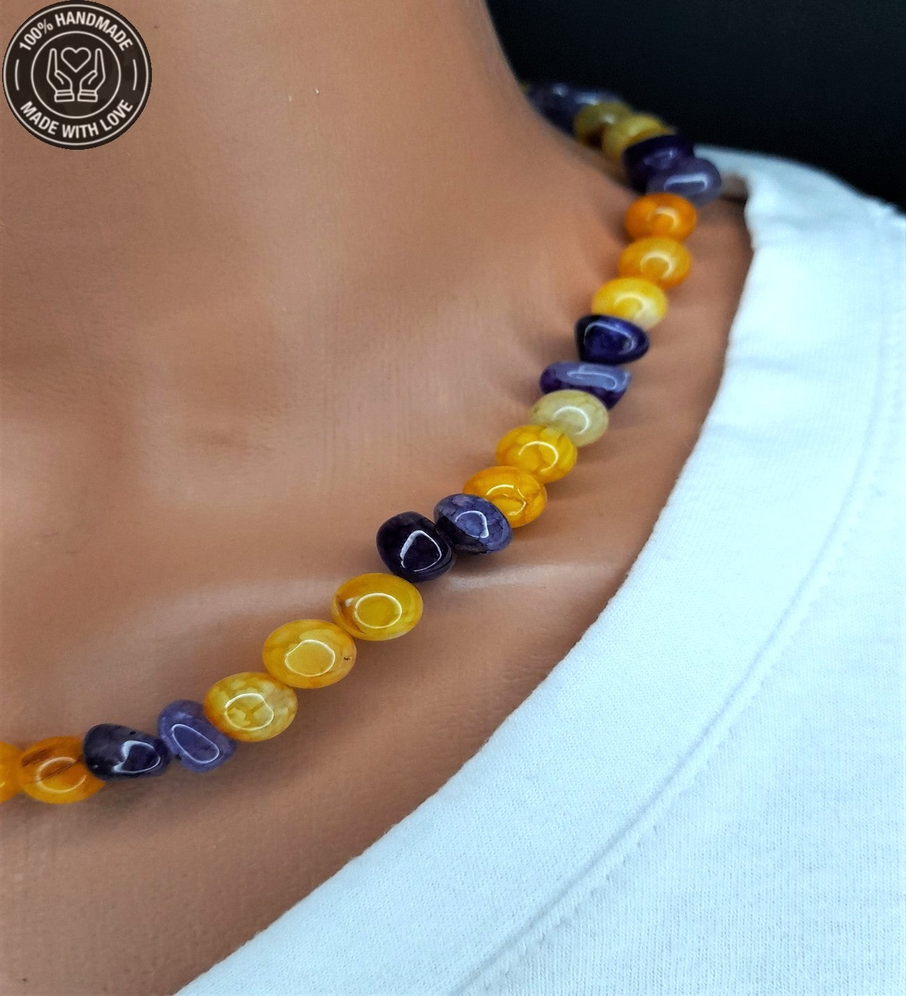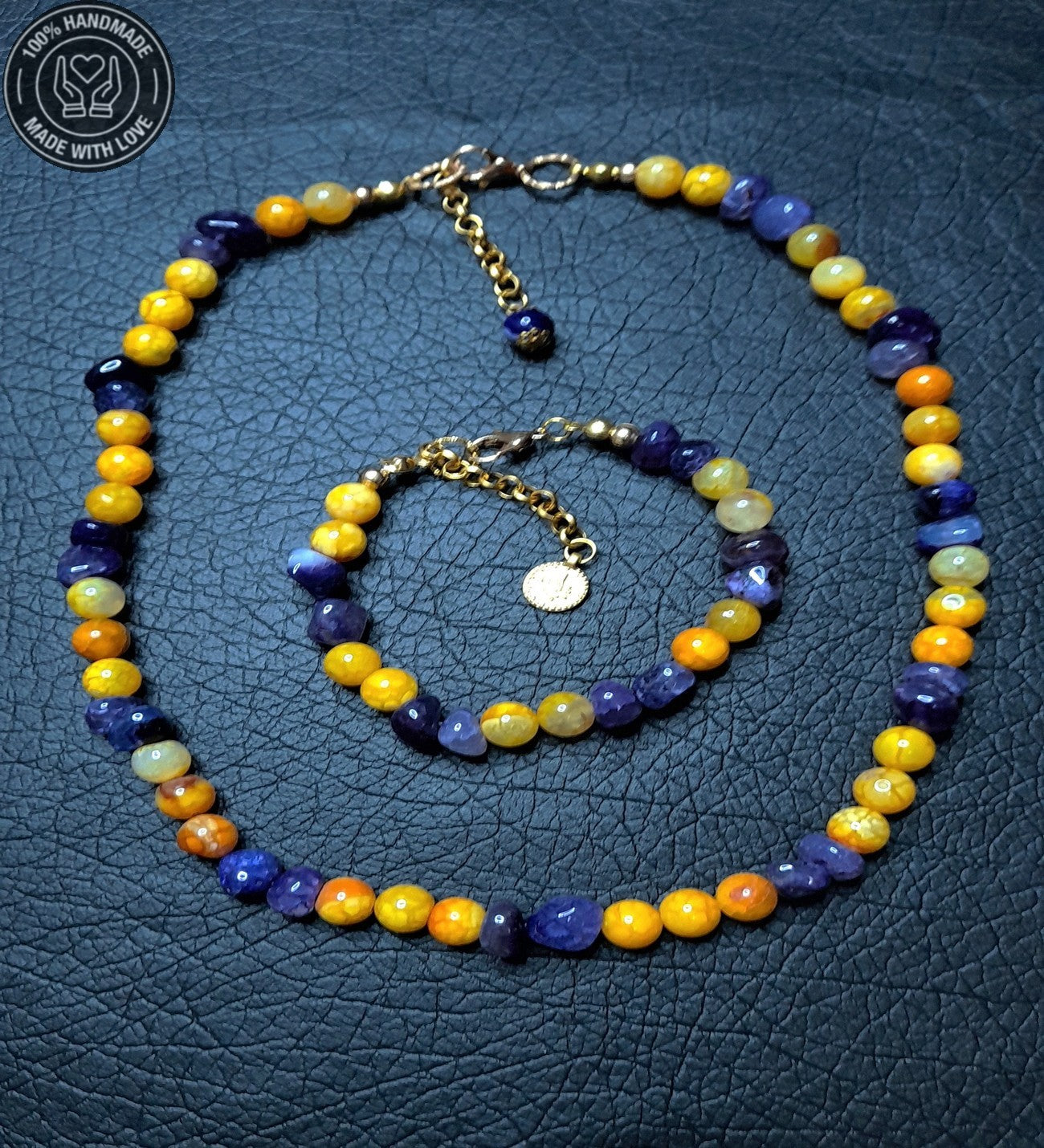 Sarı Ve Mor Akik Motivasyon Arttırıcı Kolye Bileklik Seti