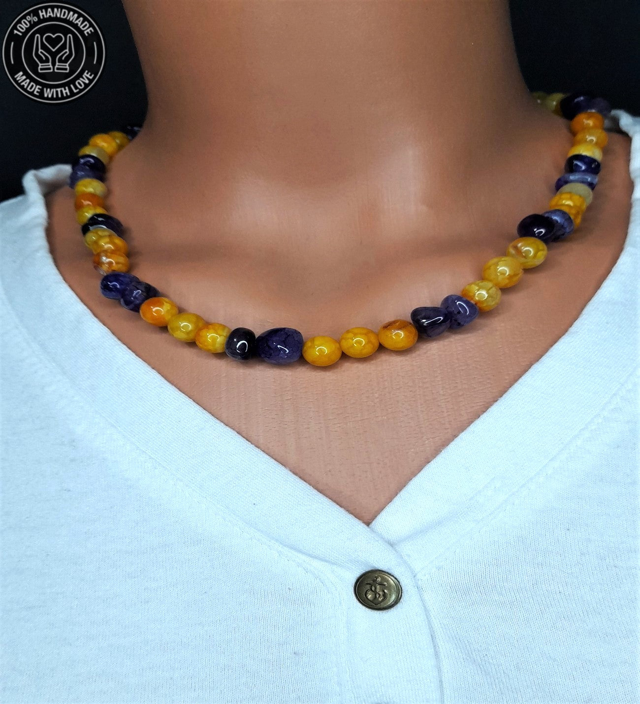 Sarı akik enerji ve neşe vererek motivasyonu artırırken, mor akik içsel gücü ve kararlılığı destekler. Her iki akik türünün de nazara karşı etkili olduğuna inanılır. Sette yaklaşık 48-50 cm uzunluğunda kolye ve standart boyutta (yaklaşık 18-19 cm) bileklik bulunmaktadır. Kolye ve bileklikte farklı ebatlar için iletişime geçin.