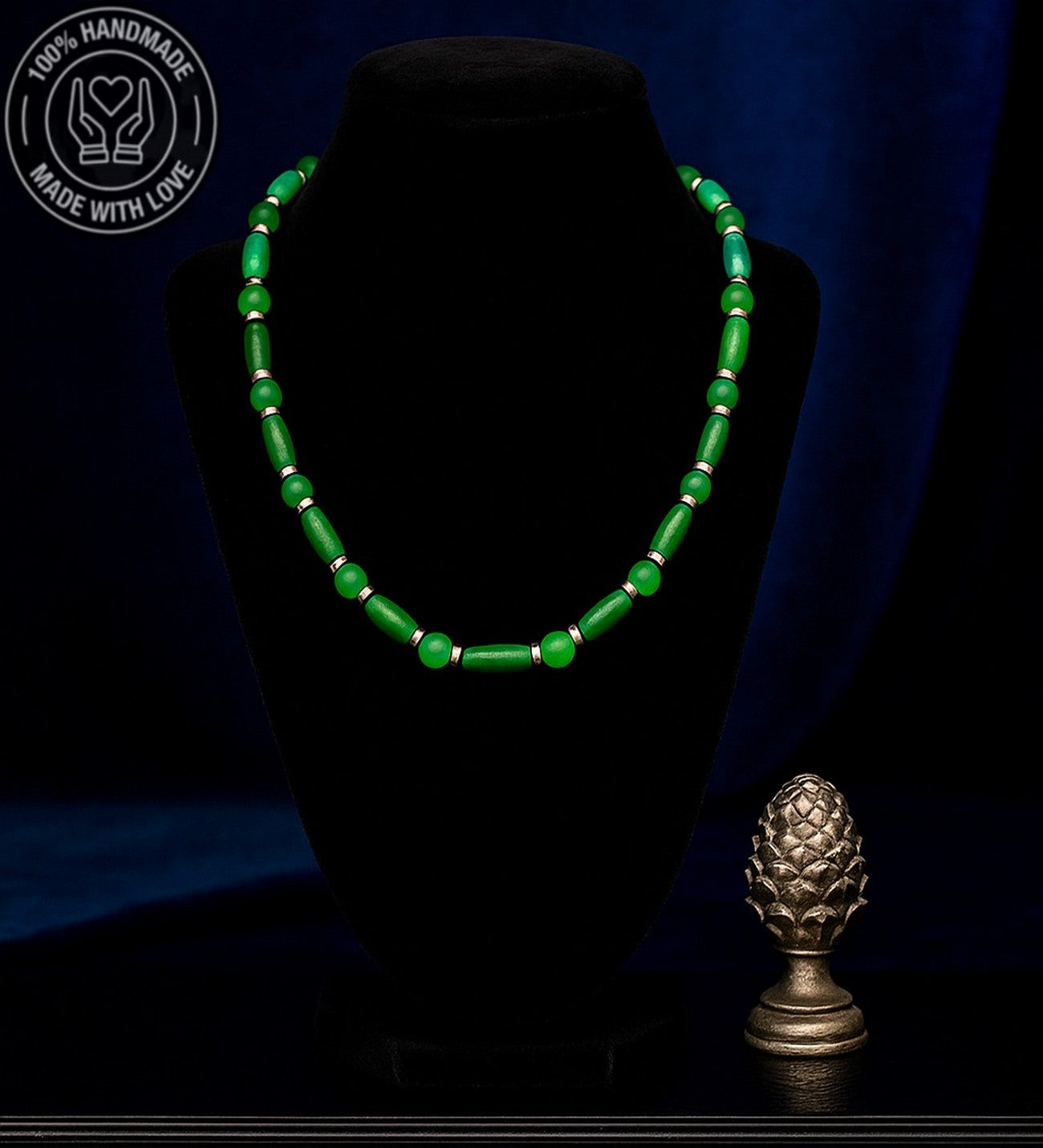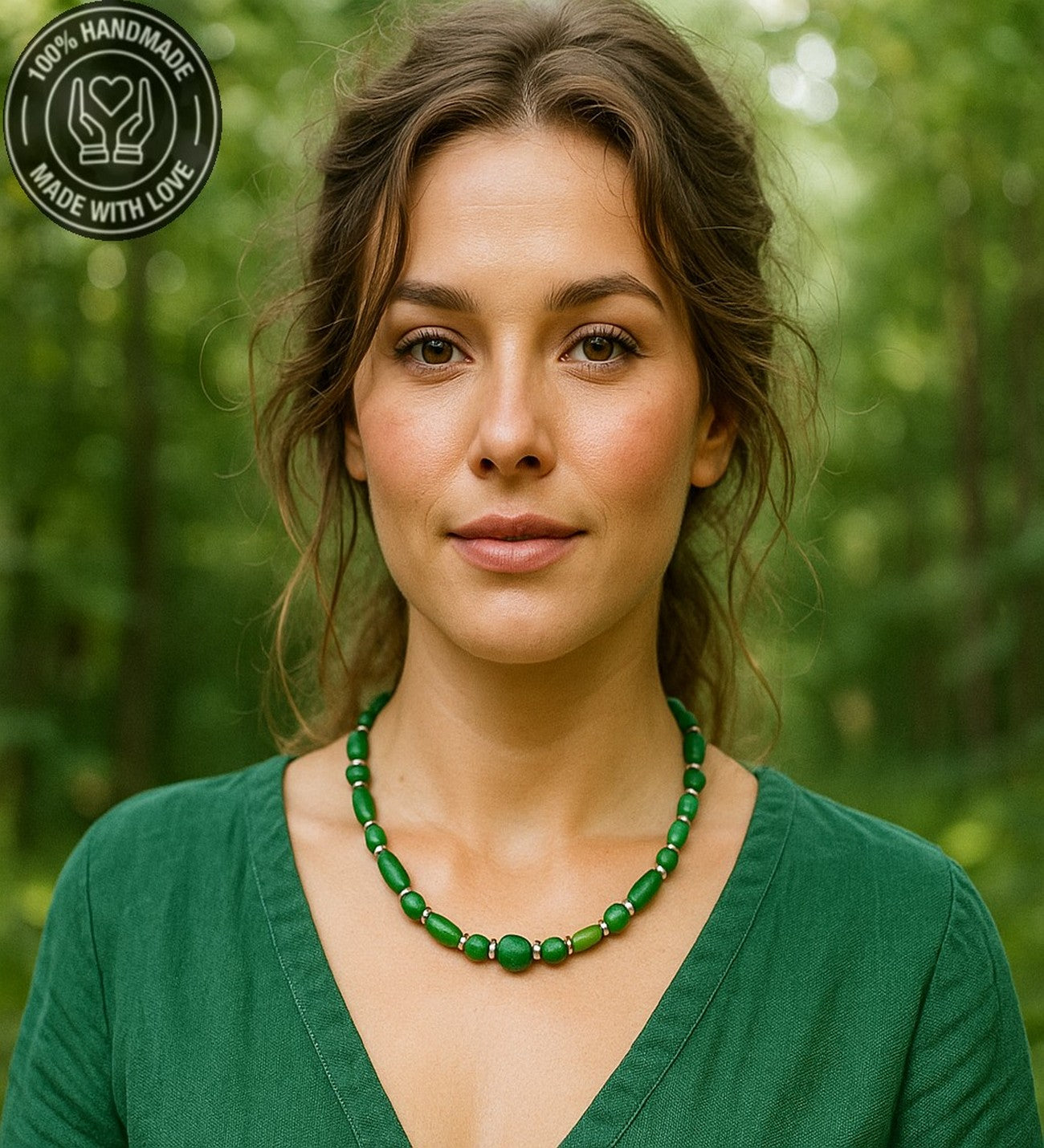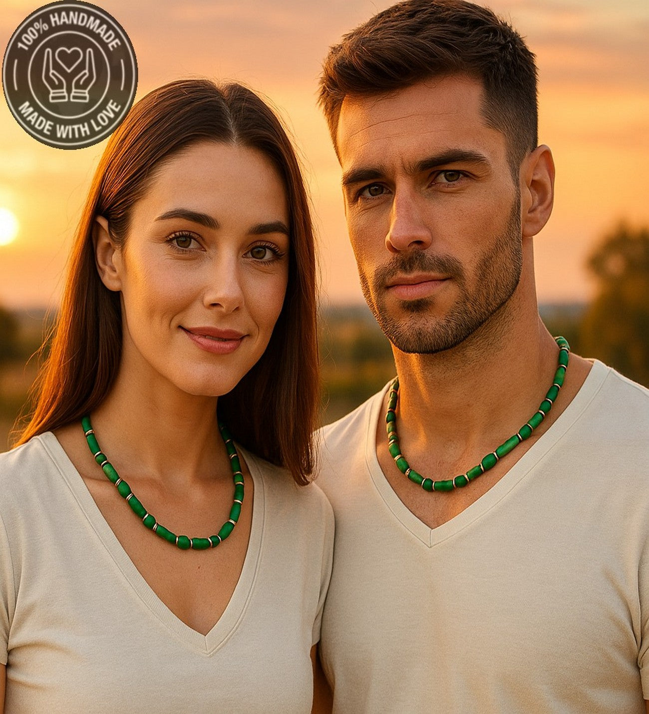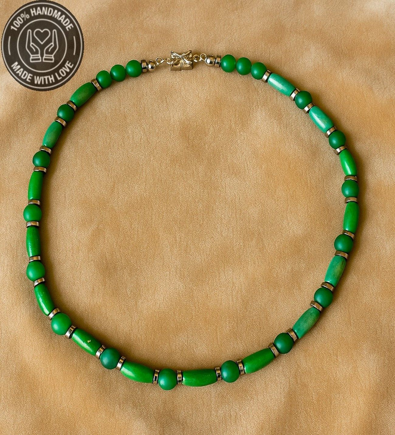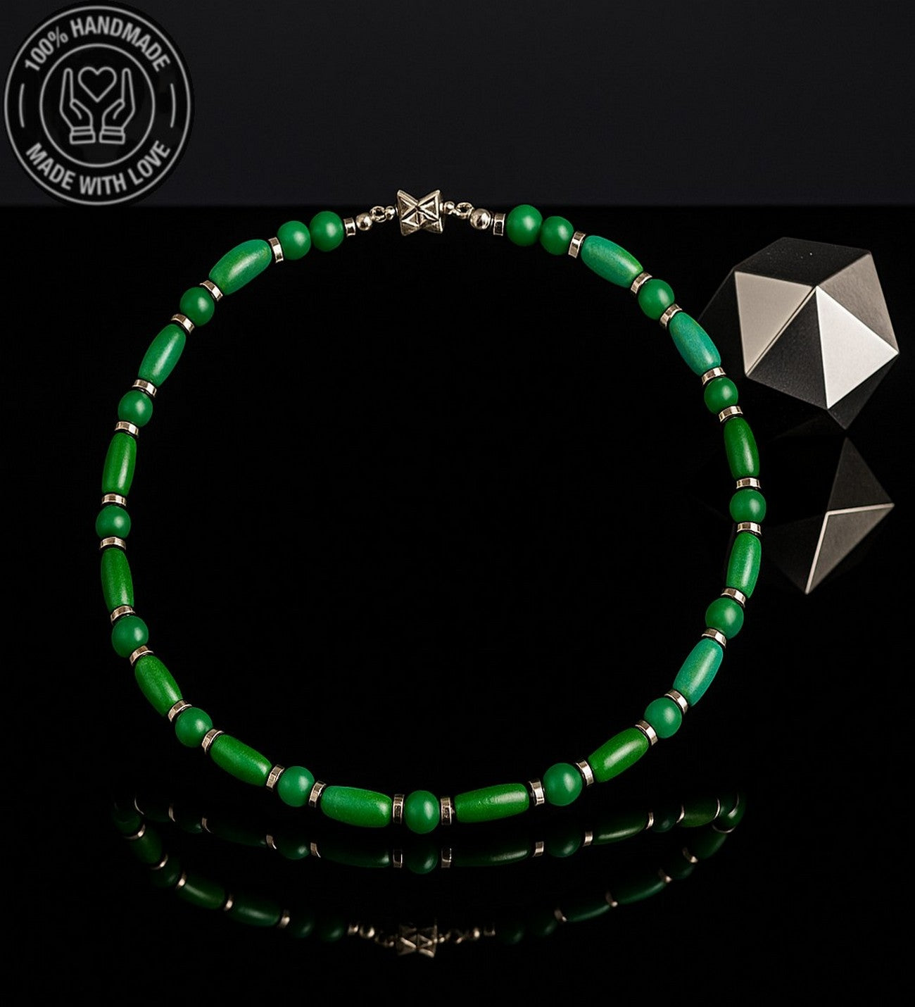 Denge ve huzurun simgesi bu özel kolye, yeşil akik ve ahşabın eşsiz uyumuyla tasarlandı.