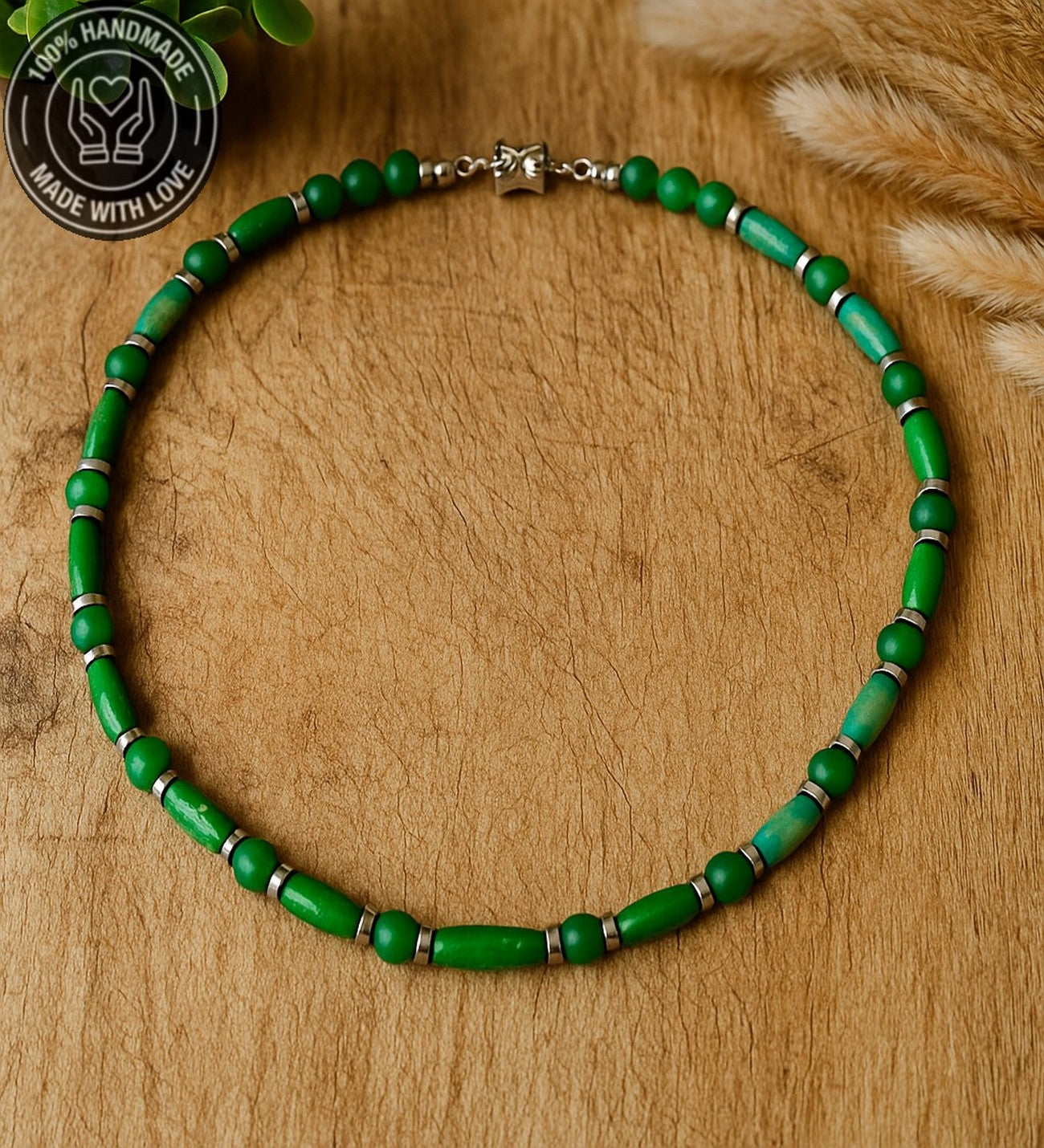 Yeşil akik ve ahşabın sinerjisiyle hazırlanan bu kolye, hem zihinsel hem de bedensel dengeyi destekler, size gün boyu sakinlik ve huzur sağlar.