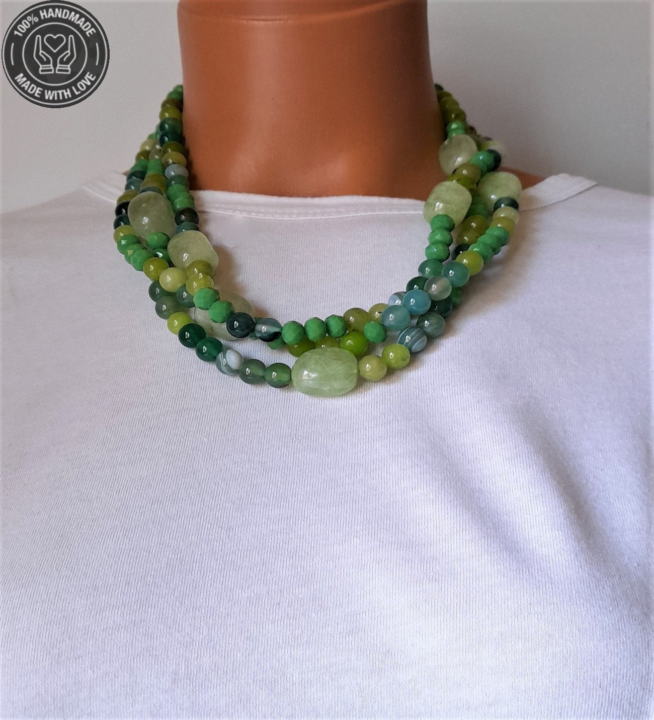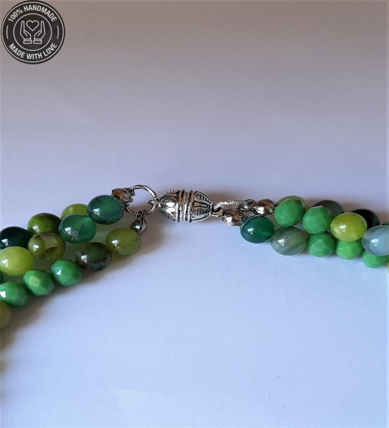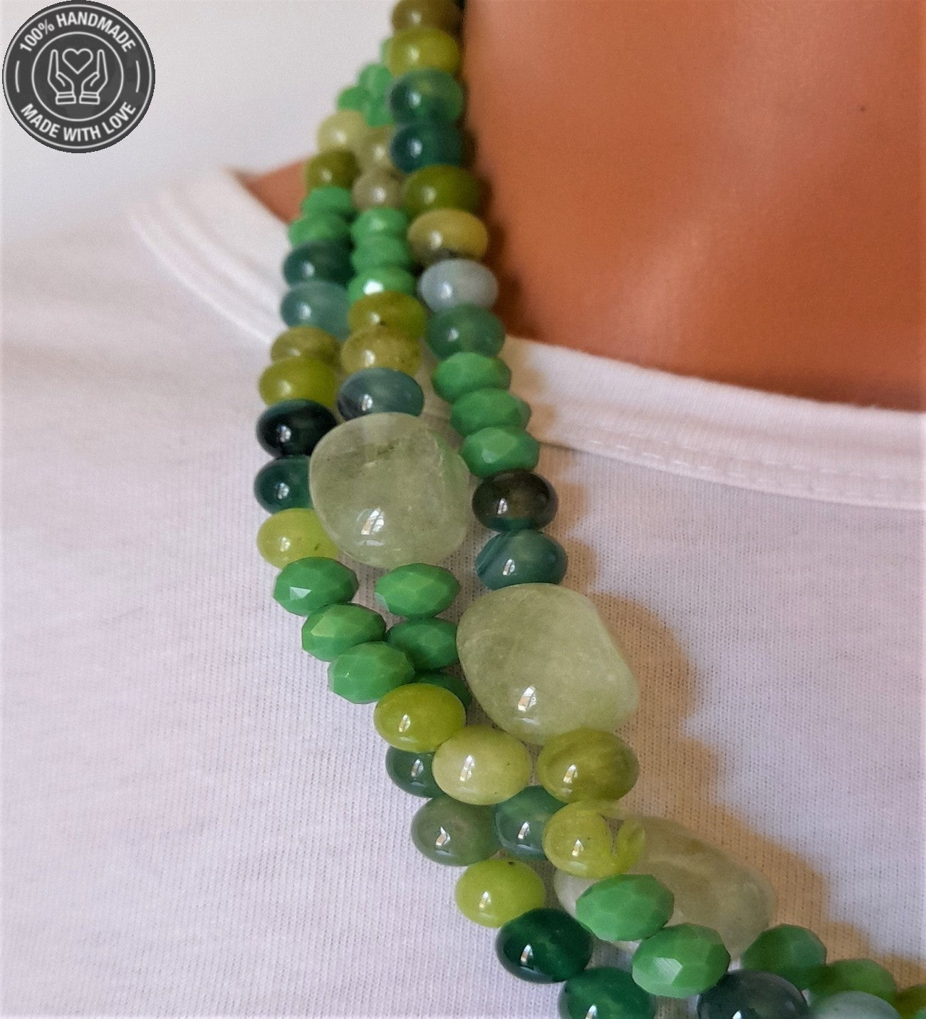 Yeşil Kuvars, Akik ve Kristal'in doğal enerjisiyle hayatınıza denge, koruma ve pozitif enerji katmak için bu özel kolyeyi hemen edinin!